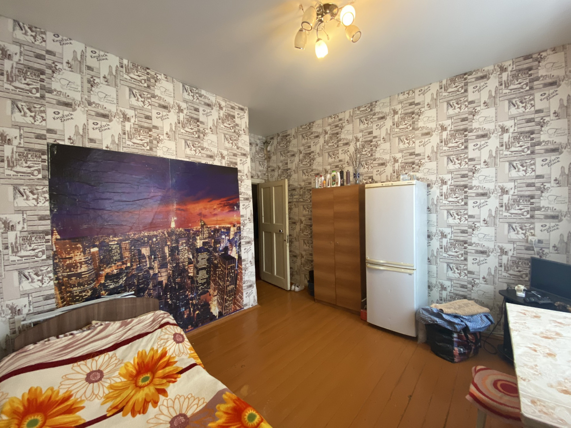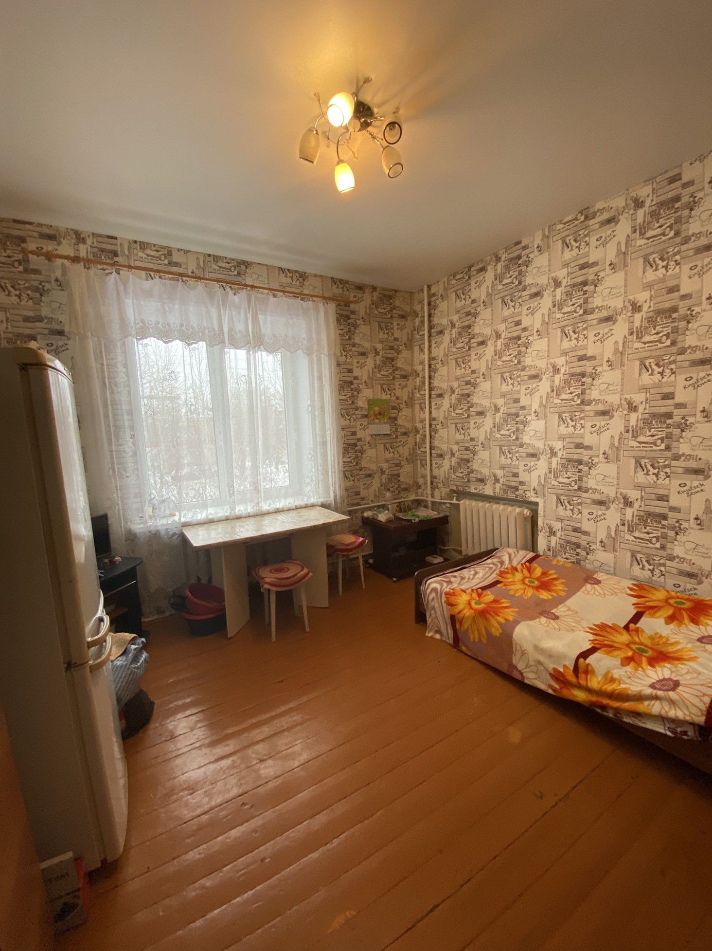 В комнате сделан ремонт(обои, натяжной потолок, евро окно), частично остаётся мебель.