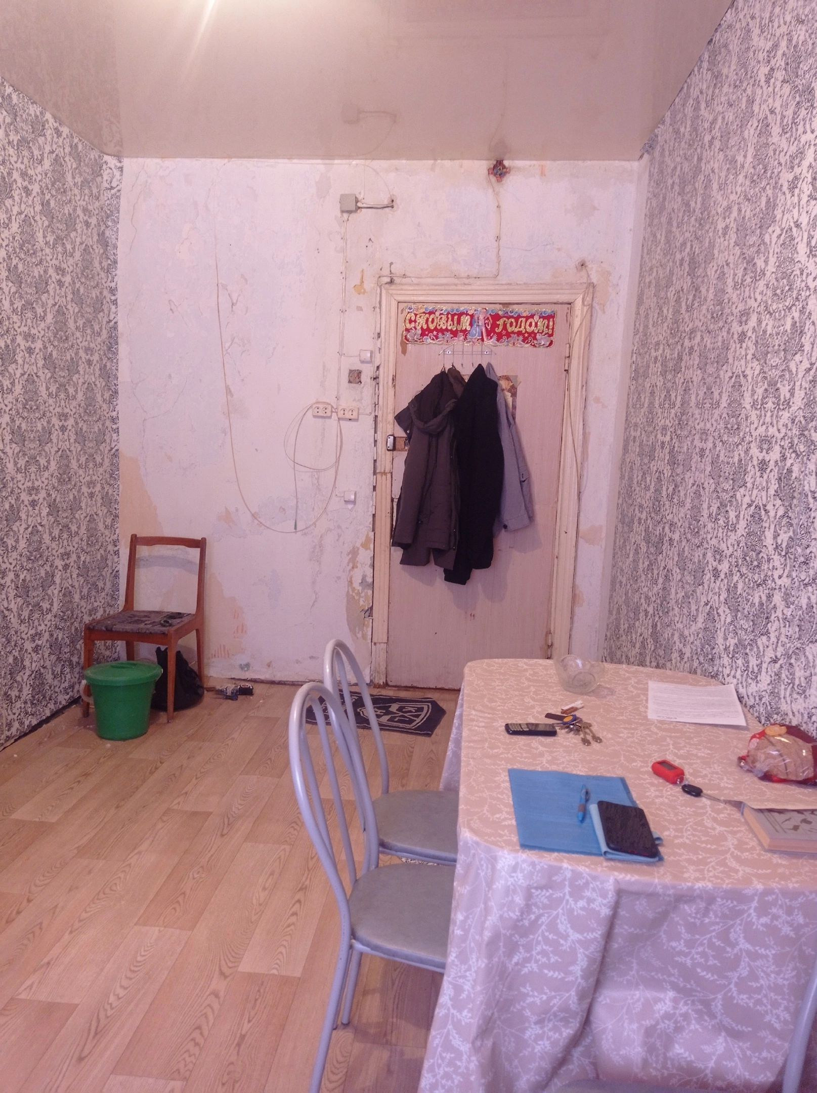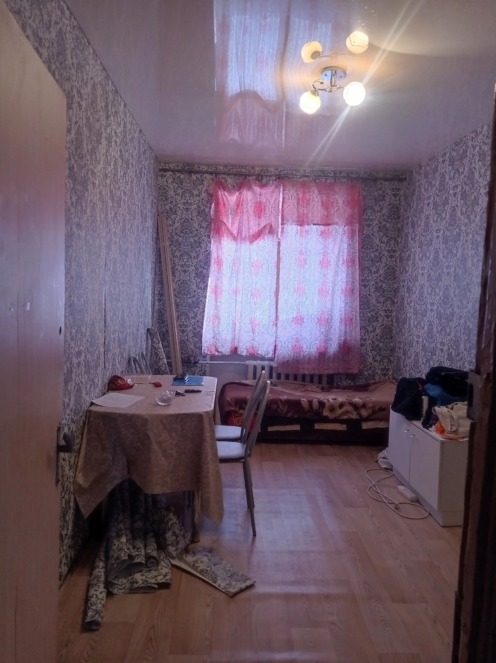 ⚫Комната очень светлая и теплая, на полу постелен линолеум, натяжной потолок, поклеены новые обои.
