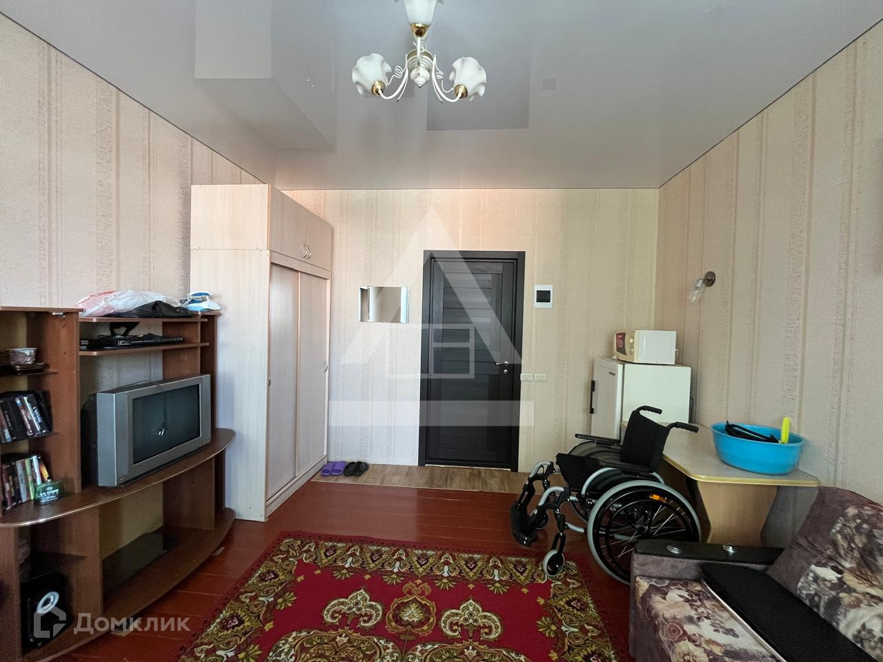 В комнате сделан хороший ремонт: евроокно, натяжной потолок, поклеены качественные обои, хорошая входная дверь. Имеется большой евробалкон.