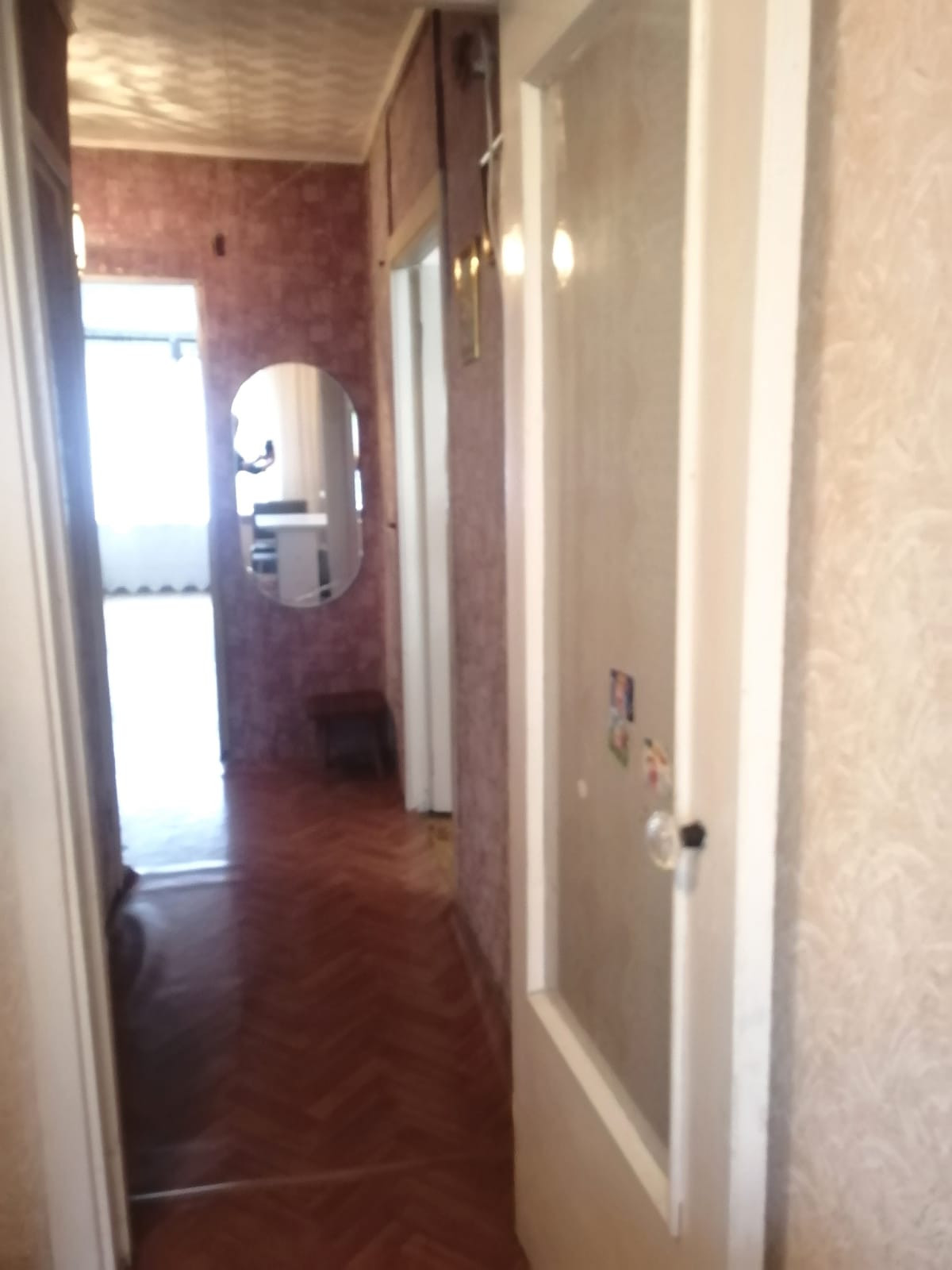 Во всех комнатах окна заменены на евро, на полу частично линолеум. Заменена сантехника, трубы пластиковые, стояк новый, имеются счетчики на горячую и холодную воду! Балкон застеклен! Железная, входная дверь.