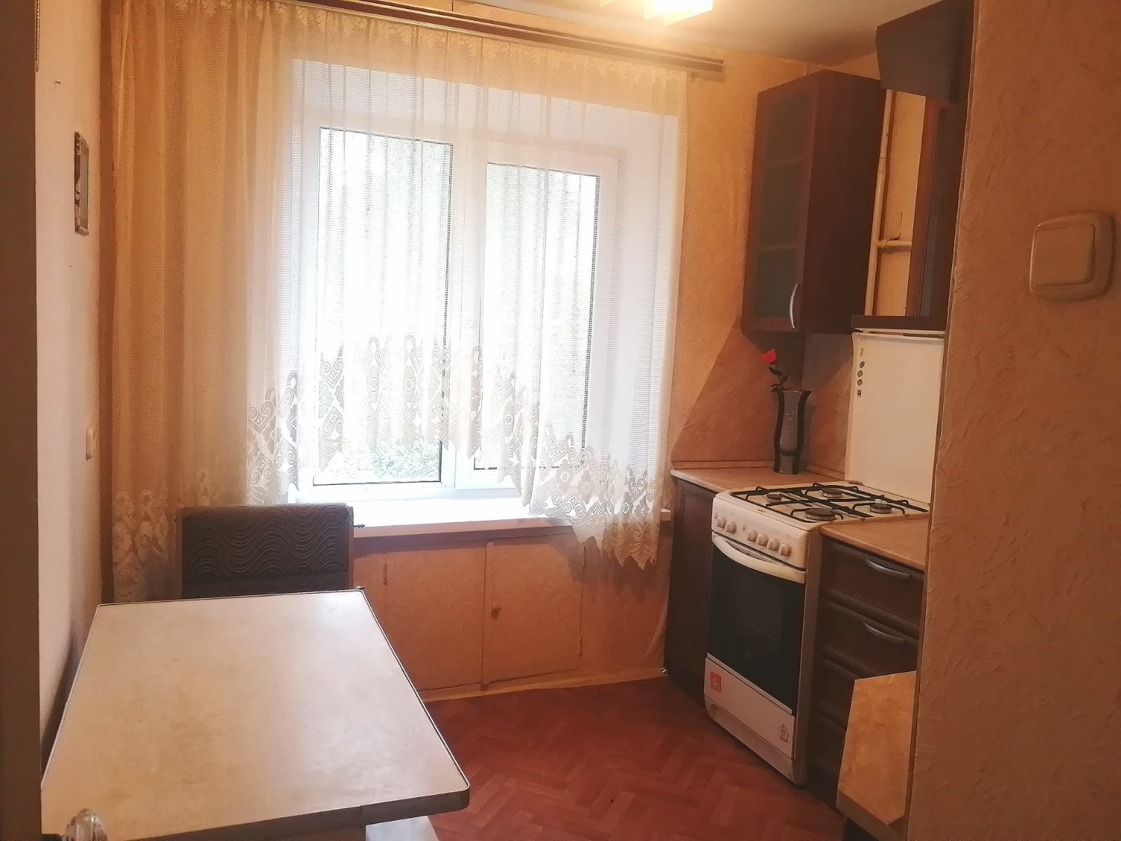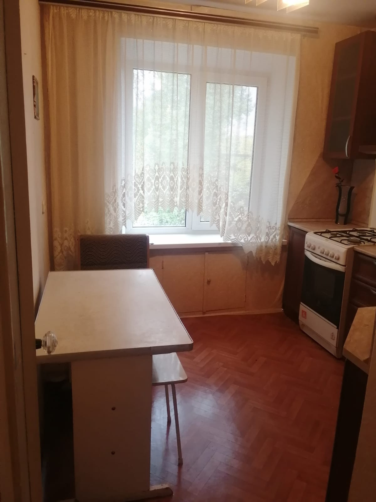 В квартире остается: кухонный гарнитур, даван, кресла.