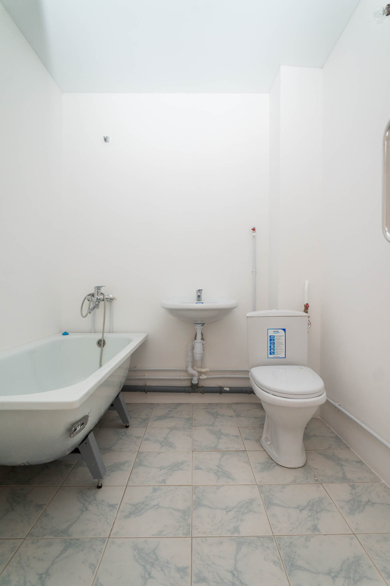 Санузел совмещенный, в котором установлена вся необходимая сантехника (раковина, ванна, унитаз, приборы учета воды)