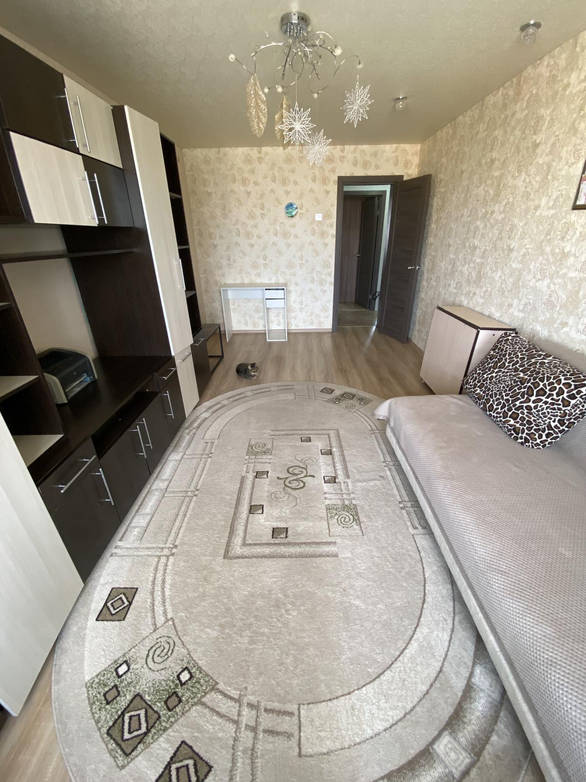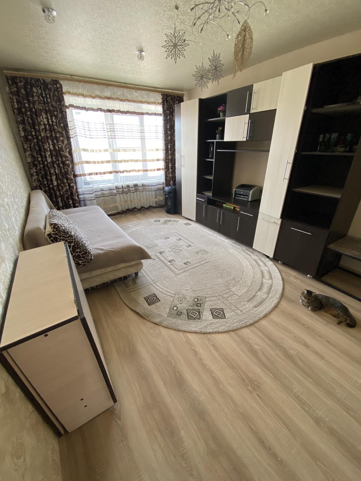 В квартире выполнен качественный ремонт: установлены пластиковые стеклопакеты, евробалкон, натяжные потолки, качественные современные обои, межкомнатные двери, на полу-линолеум. Ремонт делали для себя, состояние "заезжай и живи".