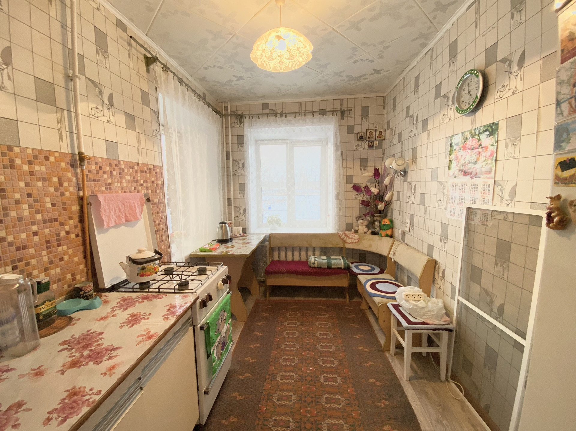 -на кухне, в коридоре новый линолеум, так же натяжной потолок