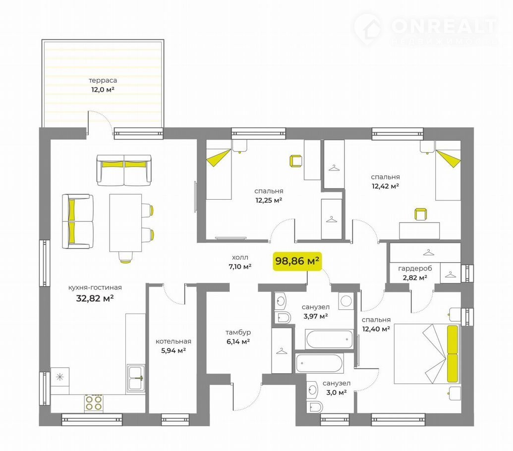 Общая площадь 98.9 м2