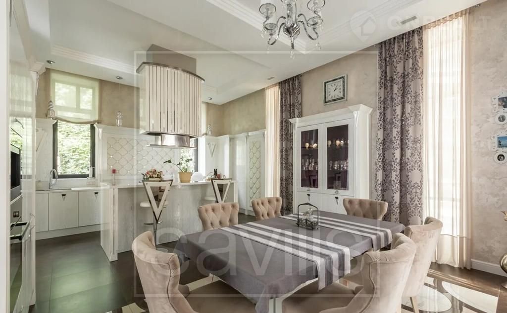 Резиденция готова к проживанию: дорогая отделка, итальянская мебель, новейшее техническое оснащение. Планировка предусматривает 4 спальни, гостиную, кухню, столовую, рабочий кабинет, кинотеатр, бильярдную, 3 гардероба, 4 с/у и подсобные помещения. Барбекю-зона плавно переходит в собственный спа-комплекс. На участке выполнены ландшафтные работы. В двух шагах расположены необходимые объекты повседневного спроса: магазины, новый спортивный центр, детский сад, школа, кафе.