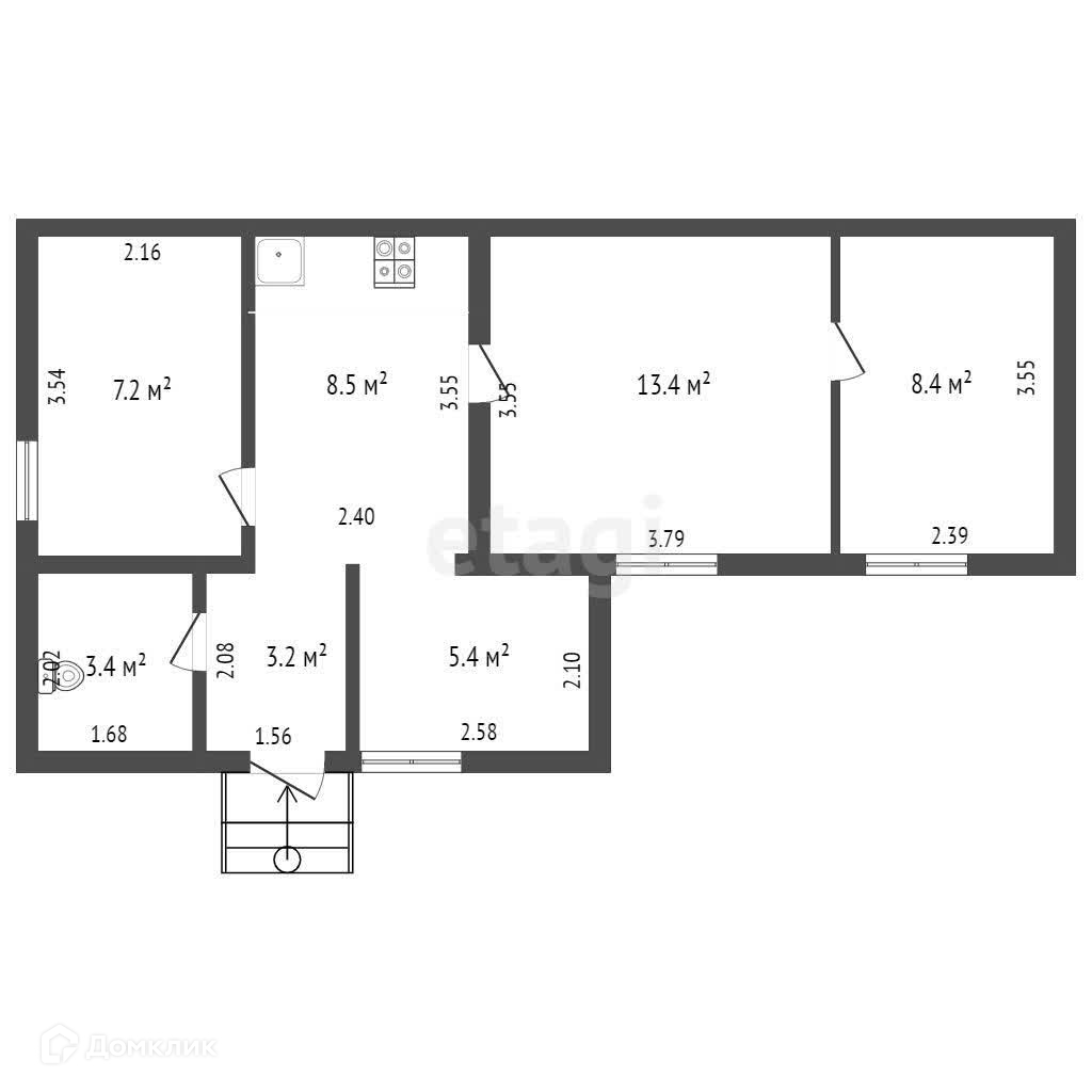Общая площадь 49.5 м2