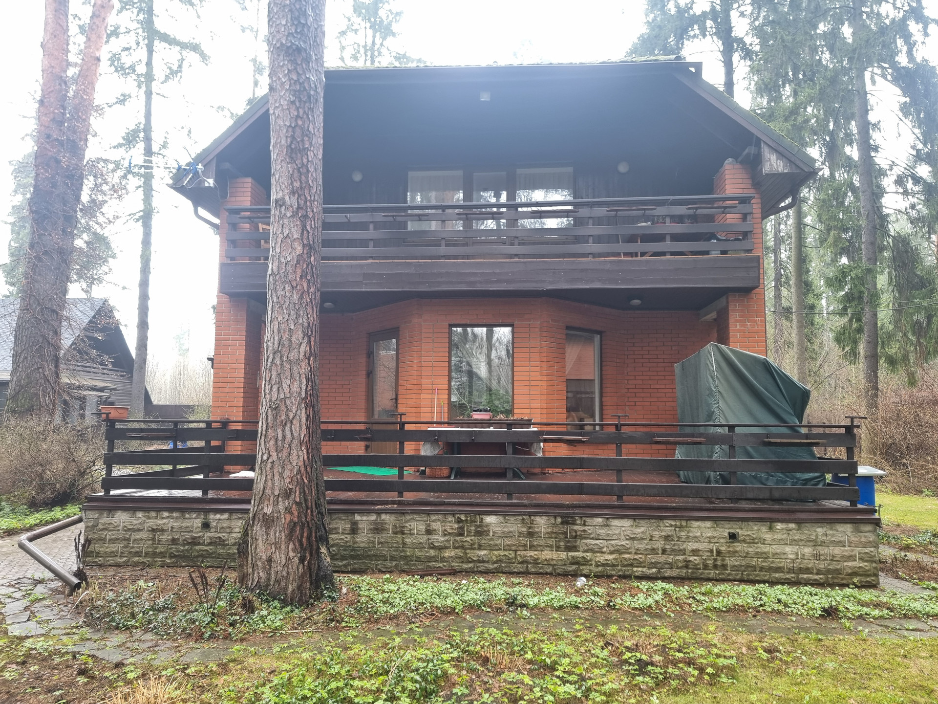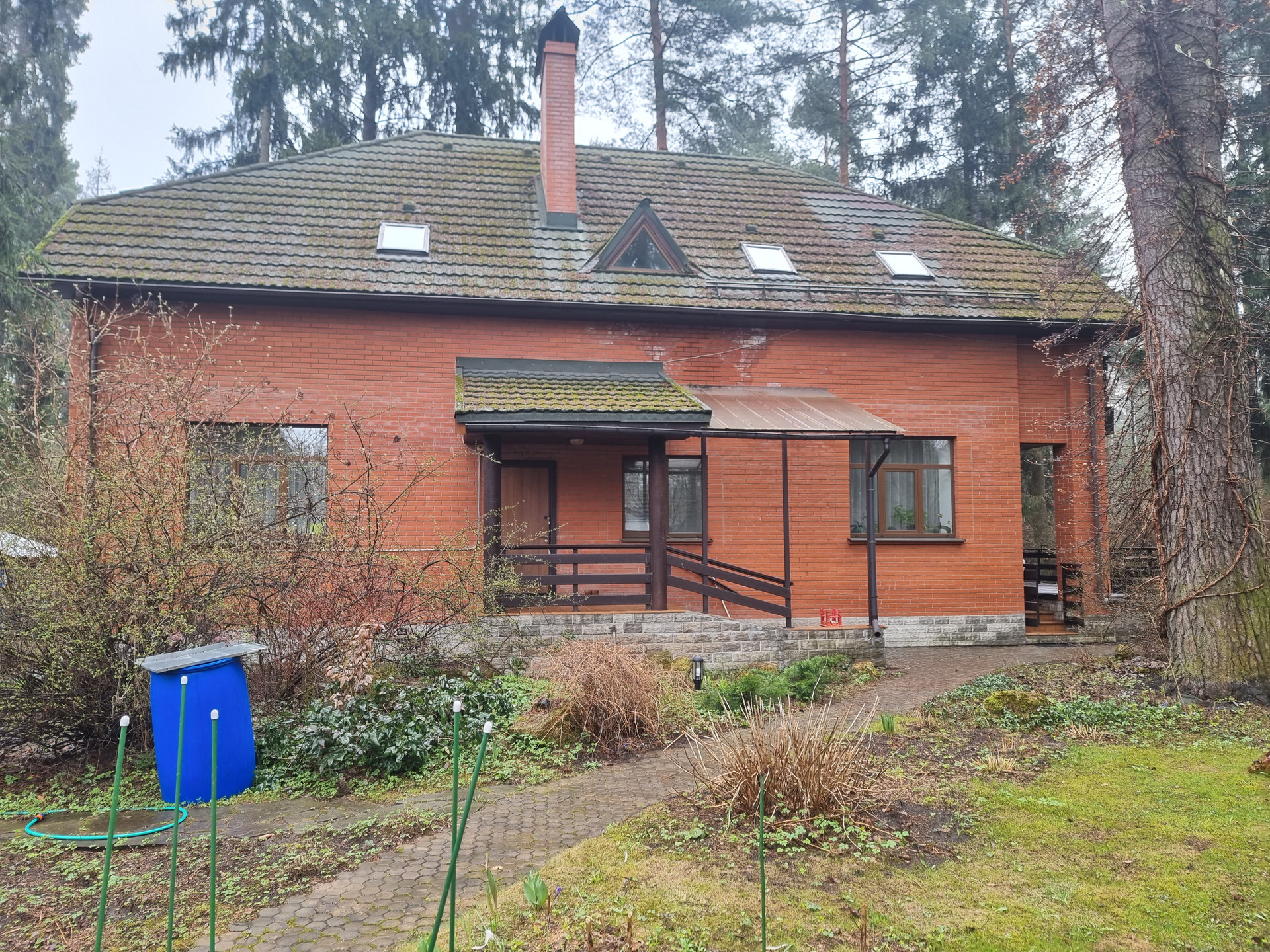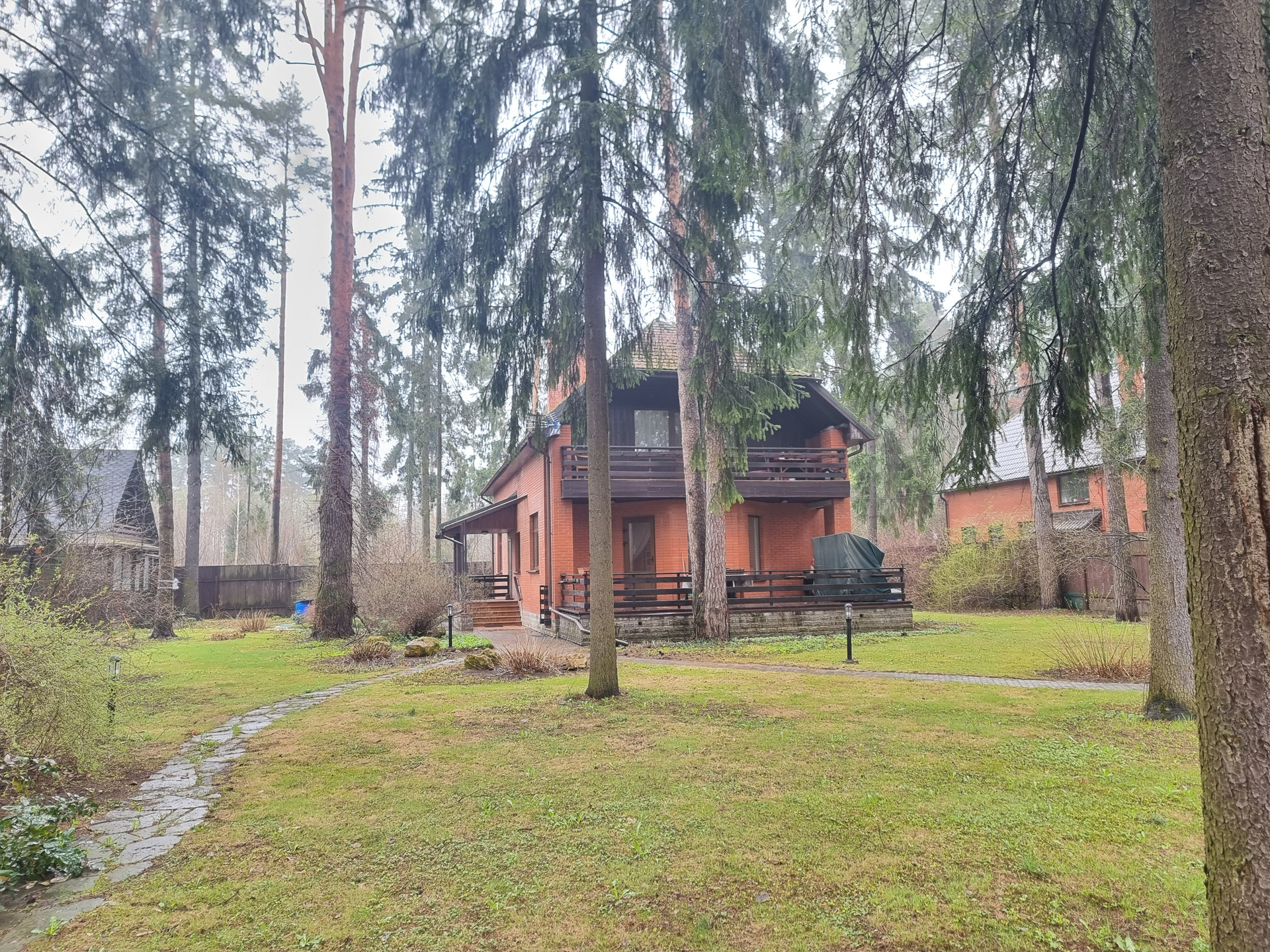 Участок (правильной формы)   20 соток. Дом кирпичный  200 кв.м.    2-х этажный  + баня (отдельное строение) + гараж+ вальер.     На участке  вековые сосны, декоративные  растения.