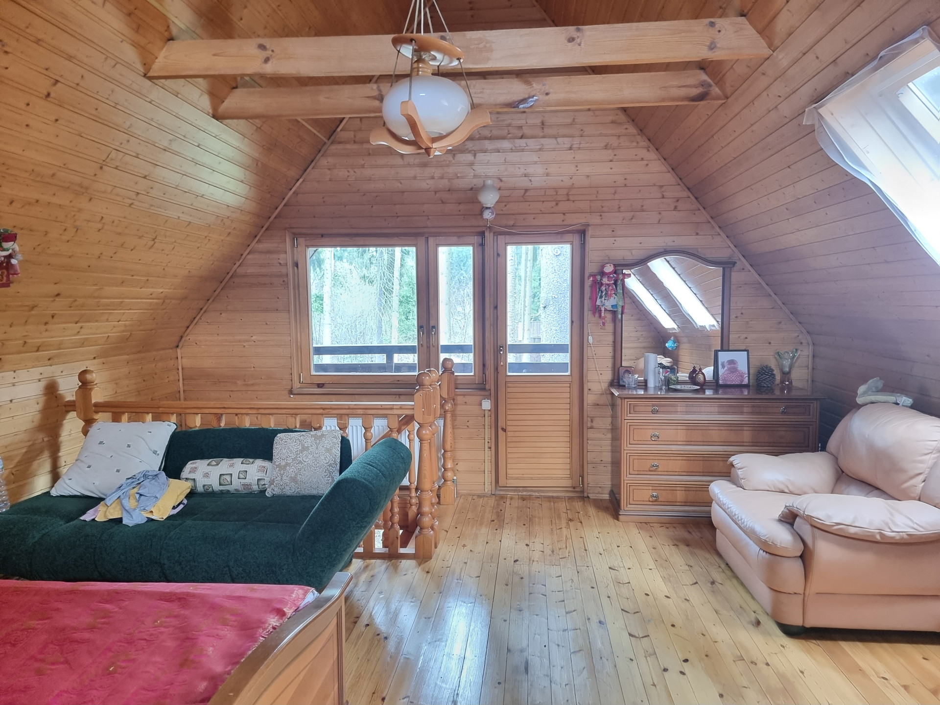2 этаж дома:  спальня  27 кв.м. с выходом на веранду + гардеробная комната 8 кв.м.,  2 комнаты по 15 кв.м., с/у совмещенный  с ванной.