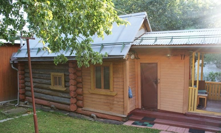 На участке есть дощатый гараж на 1 автомобиль и баня с открытой верандой.