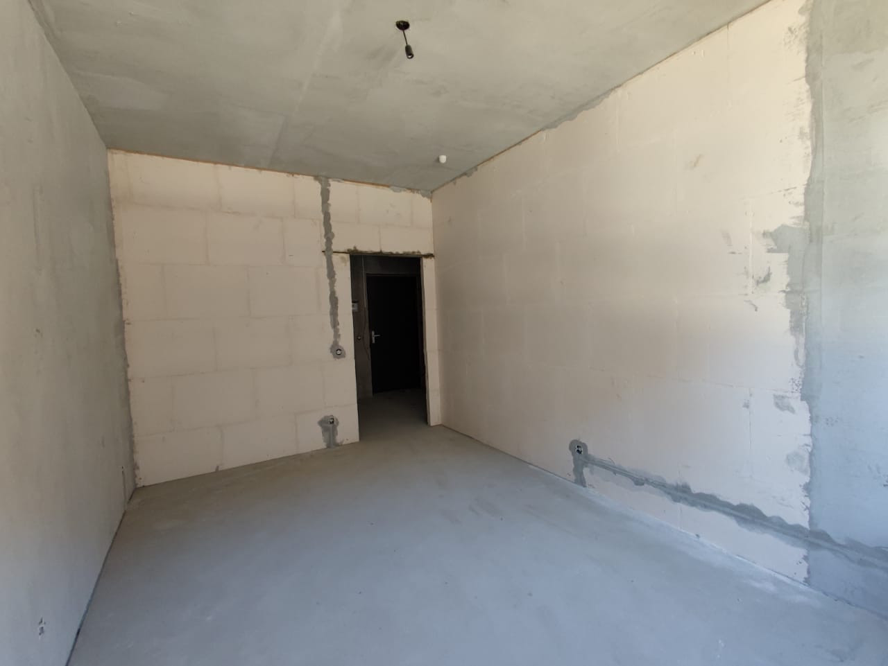 Отличный панорамный вид из окон на город. Изолированная спальня, полноценная кухня. Проведена разводка электрики, выполнена стяжка пола, штукатурка стен.
