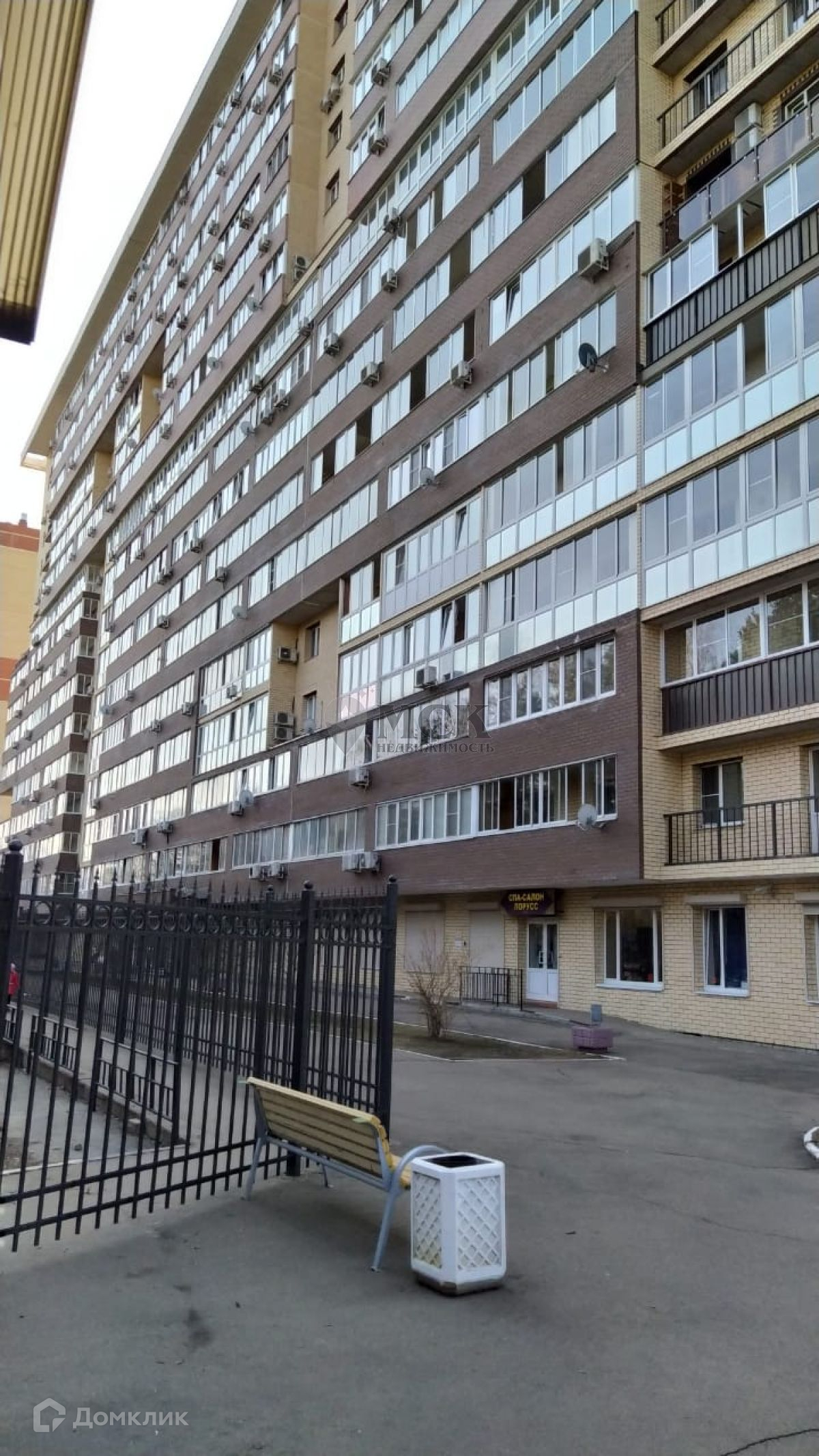 Придомовая территория огорожена, охрана и видеонаблюдение круглосуточное, детская площадка на территории, салон красоты.