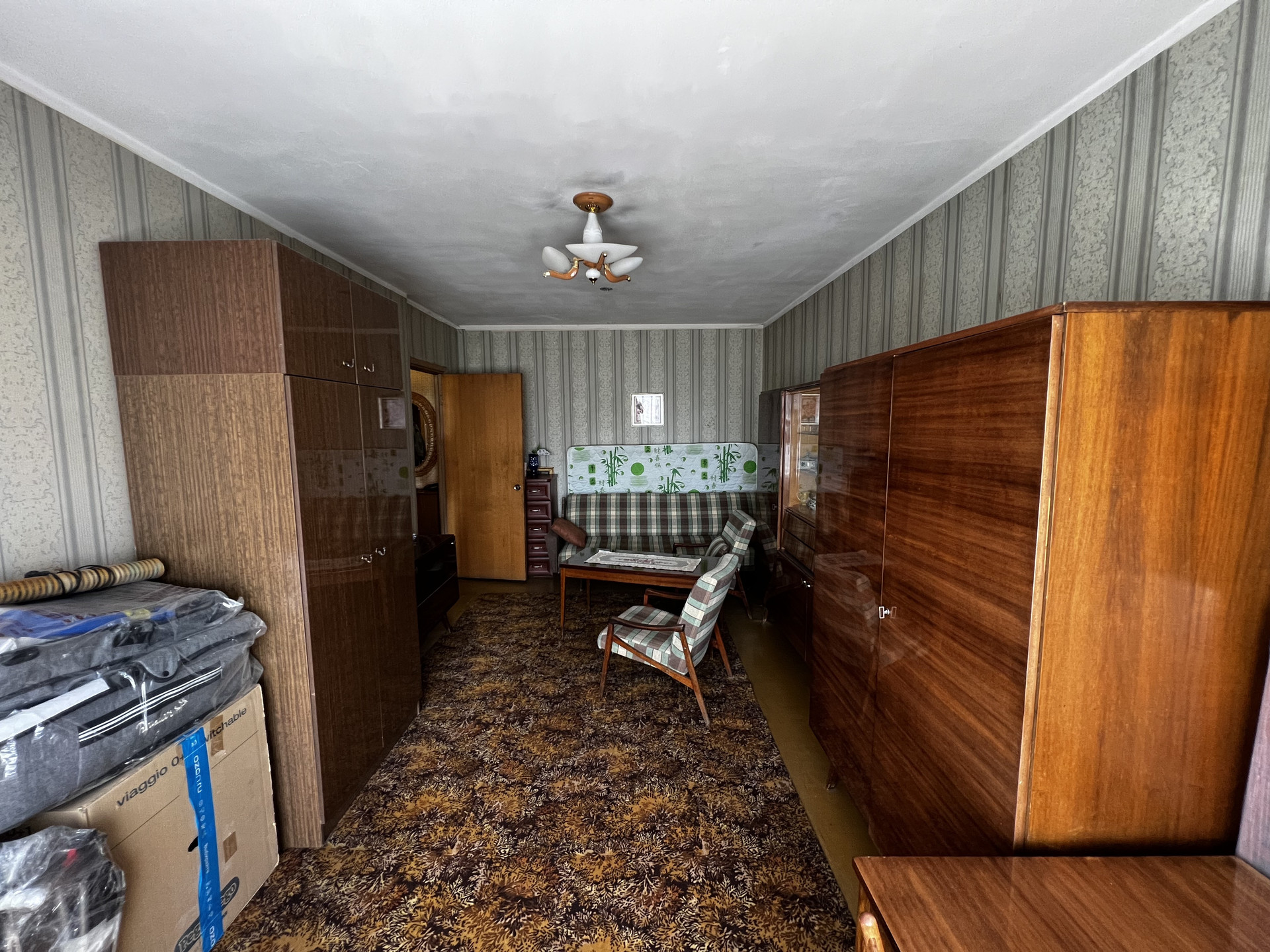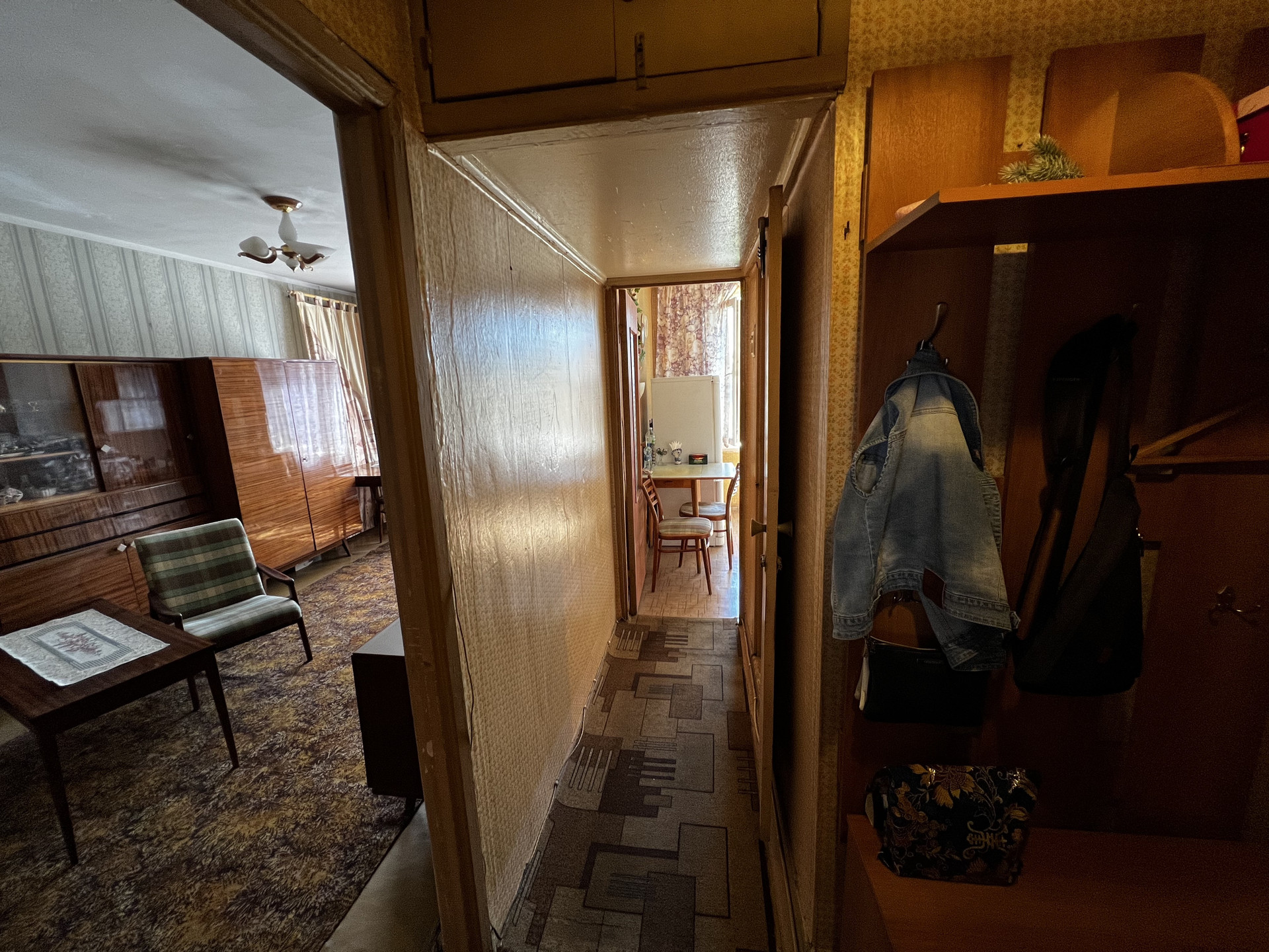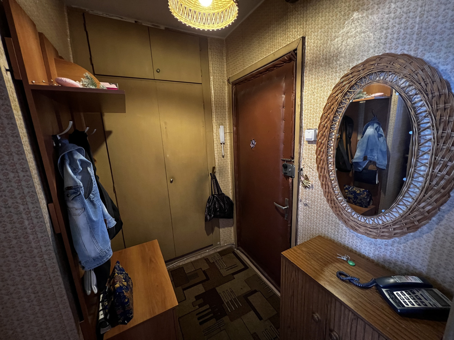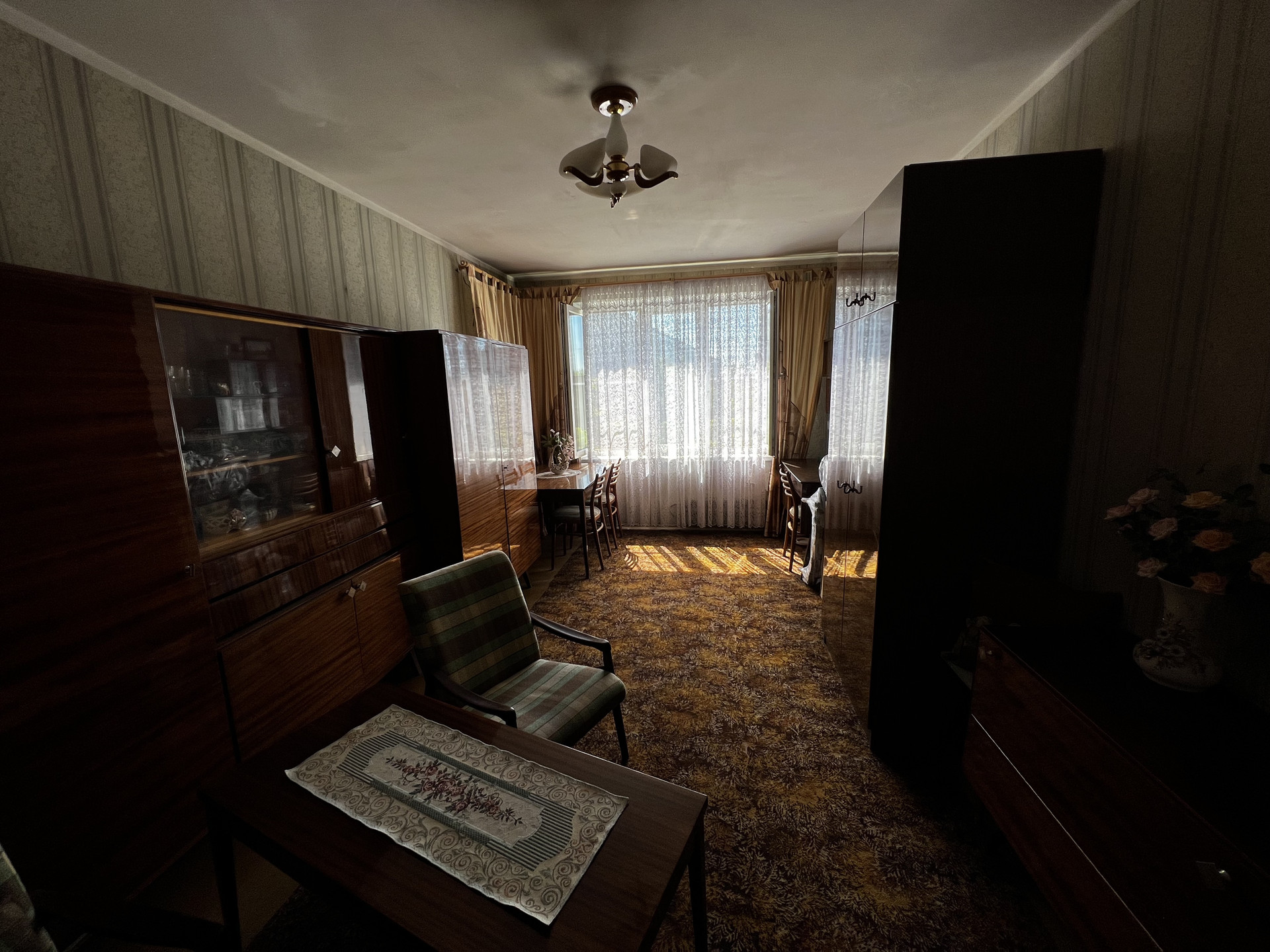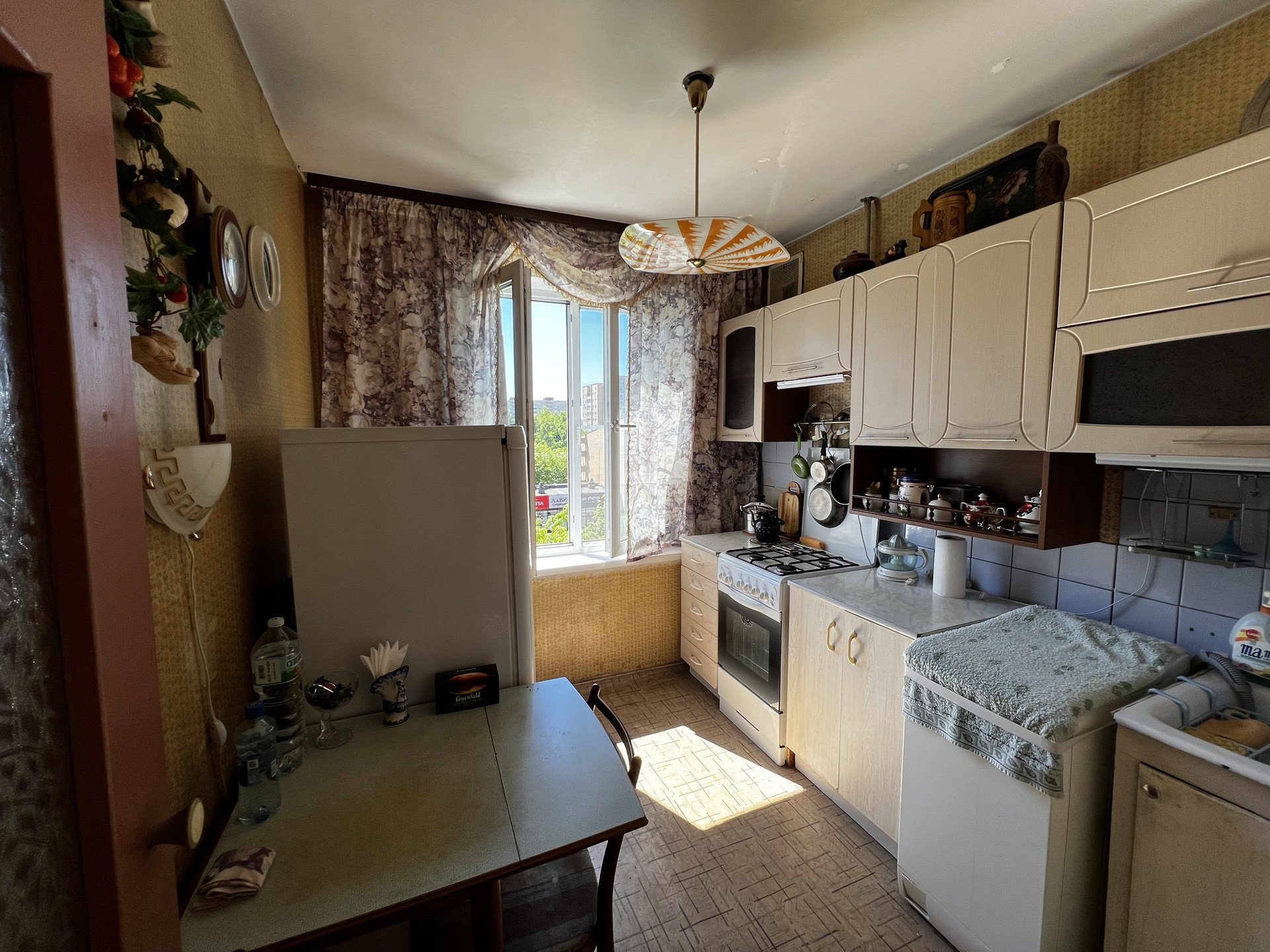 Состояние квартиры жилое, консервативное, требует постепенных вложений. Окна выходят на проспект, утопают в зелени.