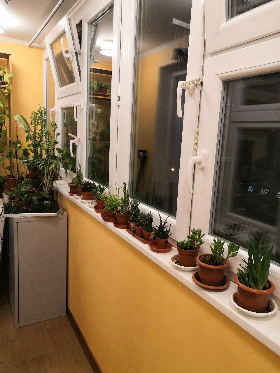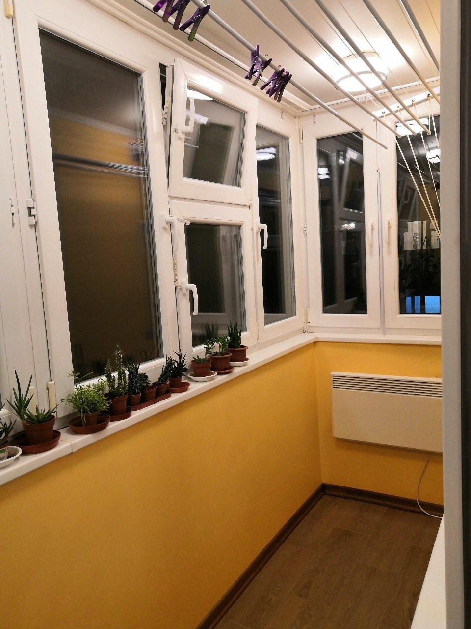 - полностью утеплили балкон изнутри (стены, пол, потолок) и снаружи (со стороны улицы отделка желтым сайдингом), установили электрический обогреватель - балкон можно использовать как отдельное помещение;