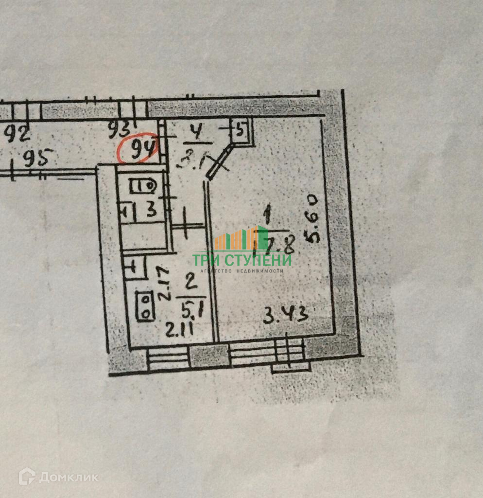 1-комнатная квартира, 28 м2, этаж 3 / 5, на продажу в Королёве, Первомайская улица, 3