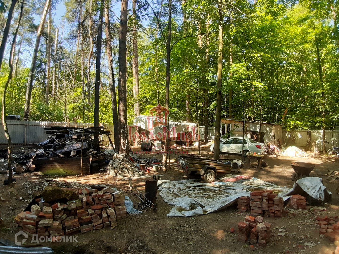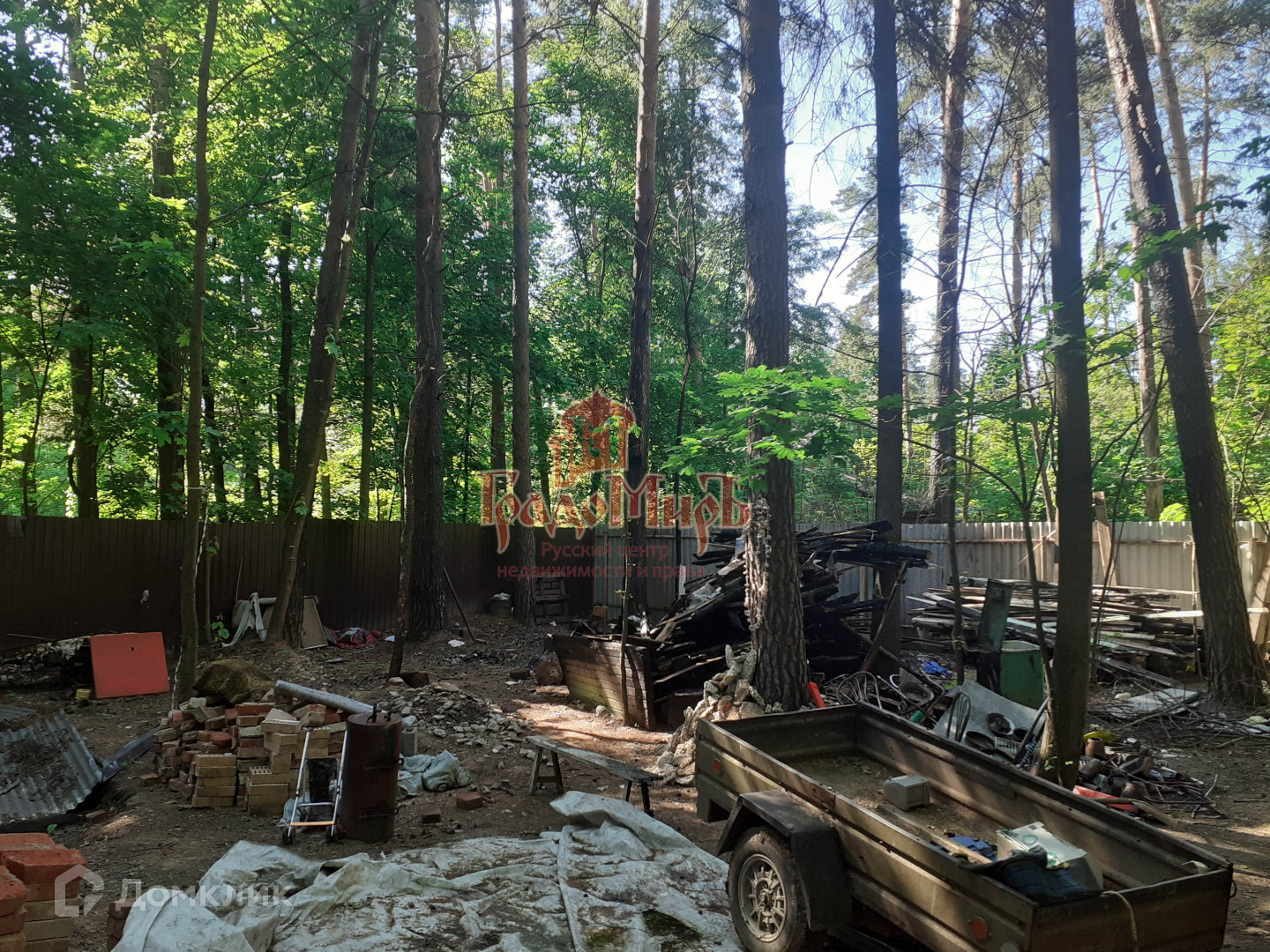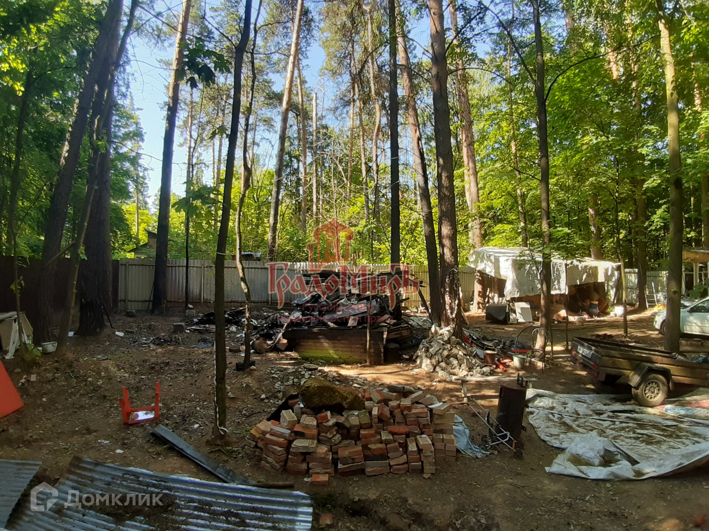 Об участке: Участок ровный, правильной прямоугольной формы. Участок со всех сторон обнесен металлическим забором, имеется заезд для машины. Ранее на участке был дачный дом, который сгорел. От дома остались материалы и вещи. Также на участке есть заливной бетонный фундамент размером 4,5х6м. Отдельного внимания заслуживают деревья, растущие на участке,  величественные сосны и клены, которые создают приятную тень, дарят свежесть и ощущение настоящего уединения. Для тех, кто ценить участки с хвойными и лиственными деревьями  это несомненная находка.