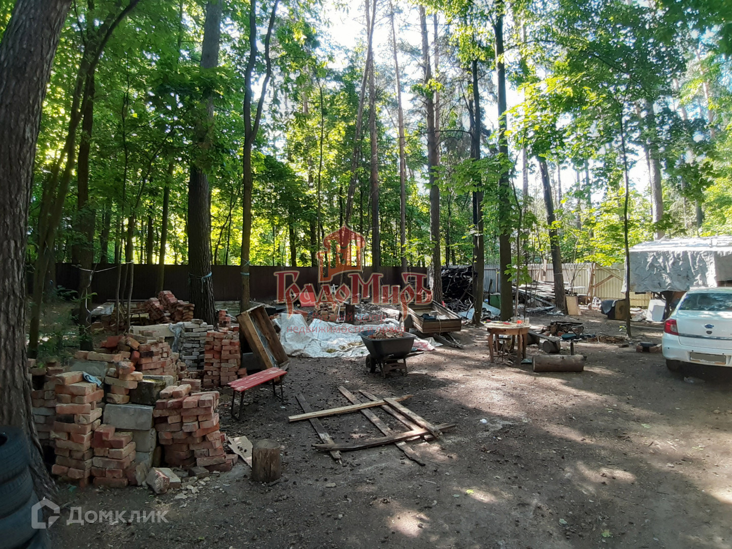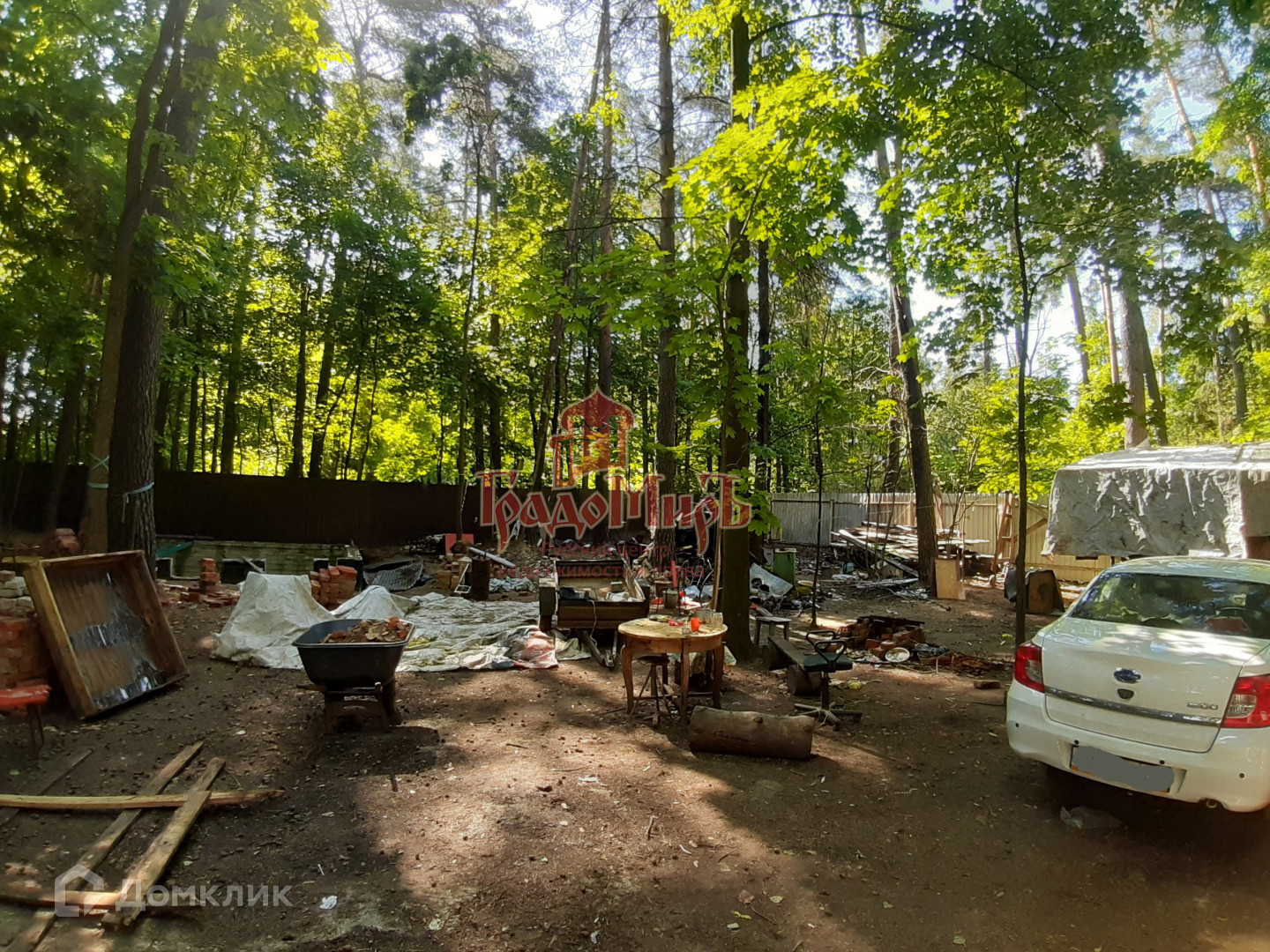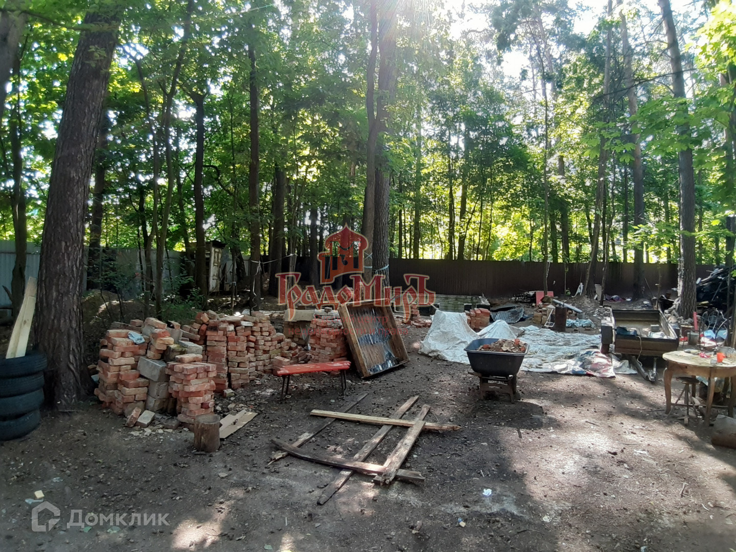 Об участке: Участок ровный, правильной прямоугольной формы. Участок со всех сторон обнесен металлическим забором, имеется заезд для машины. Ранее на участке был дачный дом, который сгорел. От дома остались материалы и вещи. Также на участке есть заливной бетонный фундамент размером 4,5х6м. Отдельного внимания заслуживают деревья, растущие на участке,  величественные сосны и клены, которые создают приятную тень, дарят свежесть и ощущение настоящего уединения. Для тех, кто ценить участки с хвойными и лиственными деревьями  это несомненная находка.