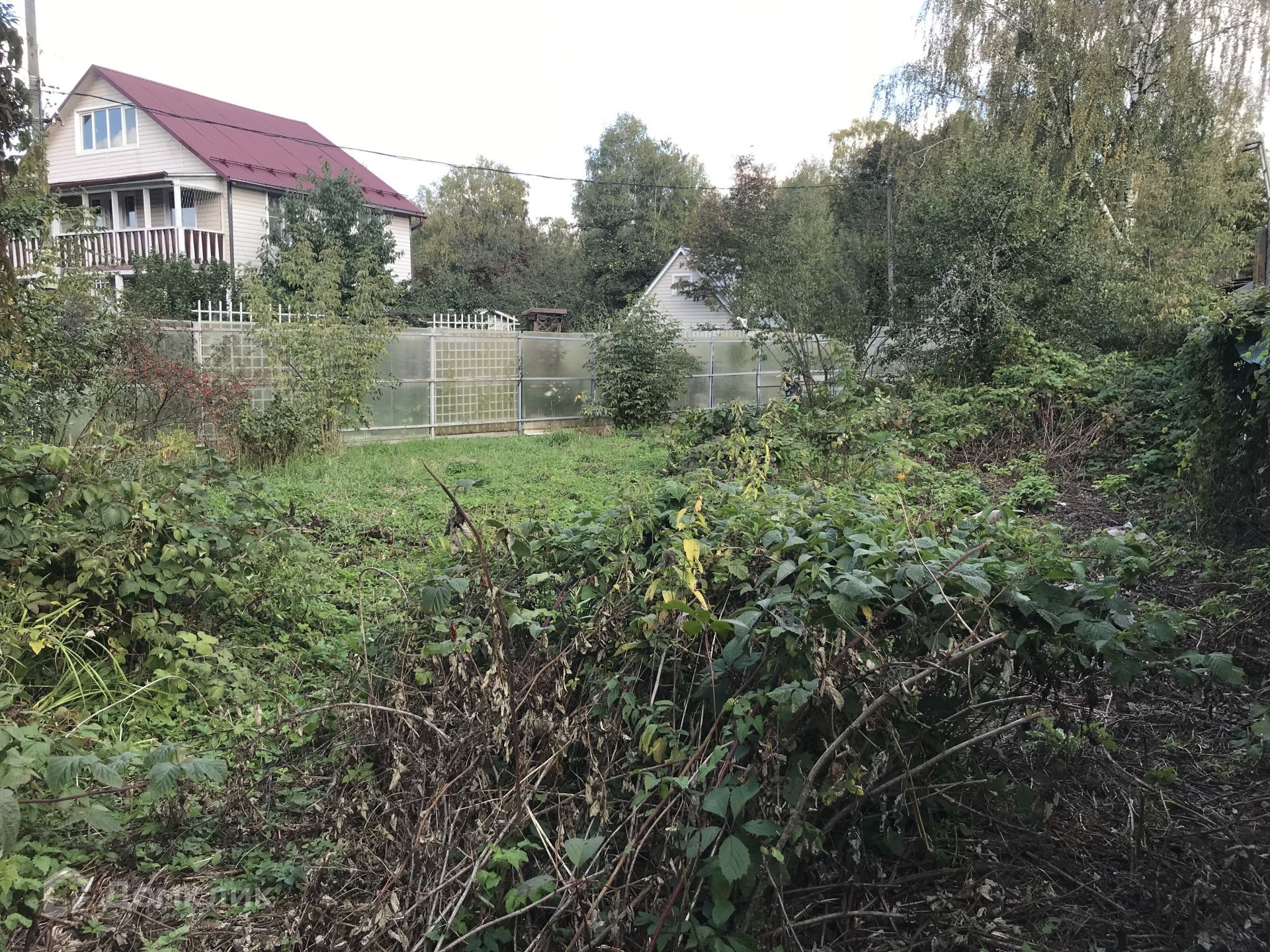 Участок ровный, сухой. Очень хорошая земля. На участке есть плодоносящие деревья: Орешник, яблоня, вишня, груша. И кустарники: ежевика, черная смородина, крыжовник.  Туи, гортензия.
