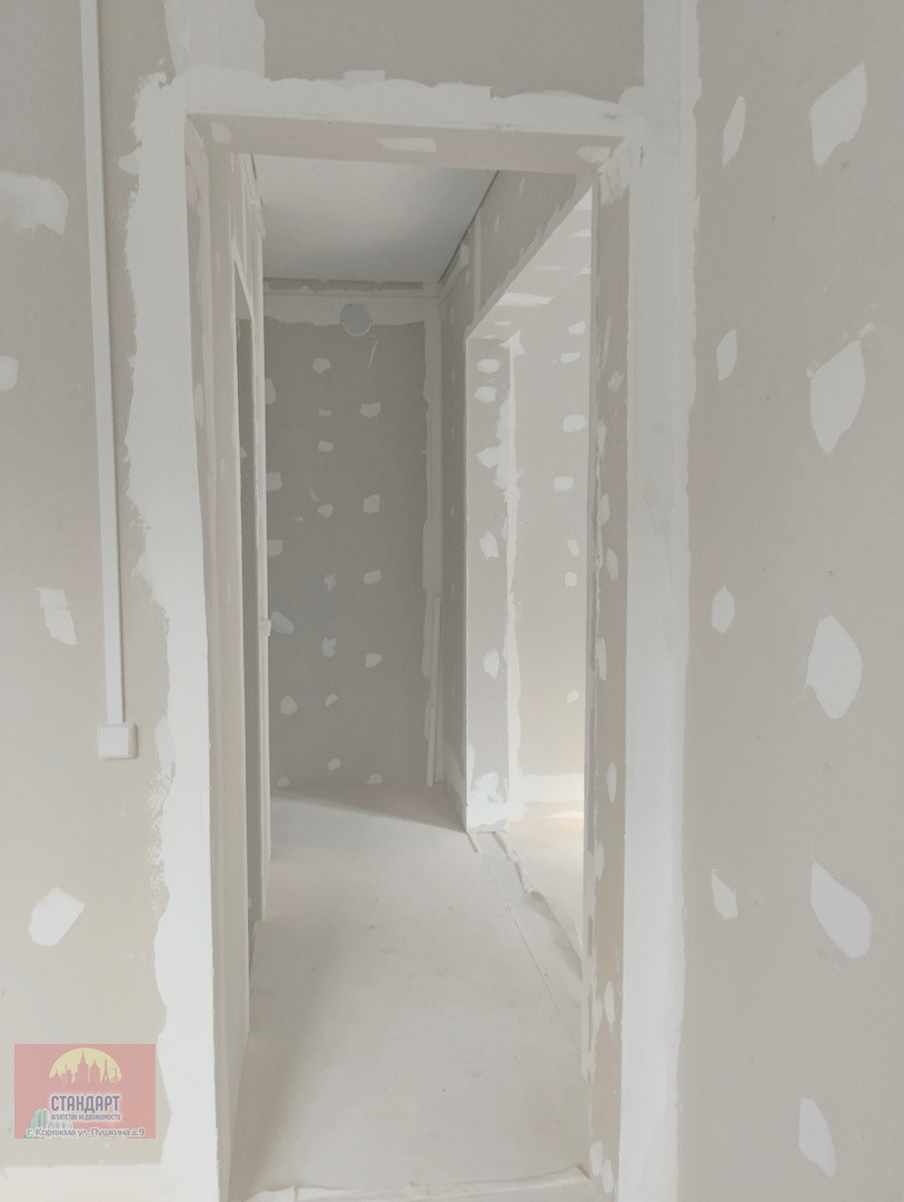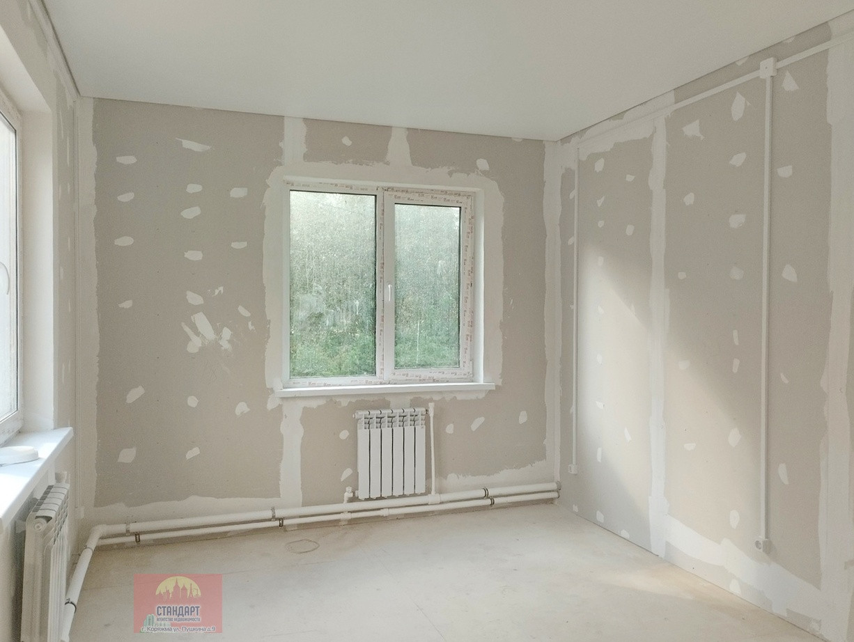 Состояние предчистовой отделки: натяжной потолок, пол - фанера, стены - гипсокартон, окна ПВХ