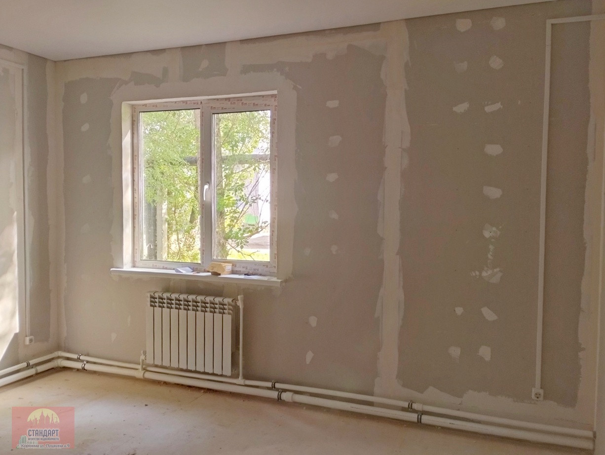 Состояние предчистовой отделки: натяжной потолок, пол - фанера, стены - гипсокартон, окна ПВХ