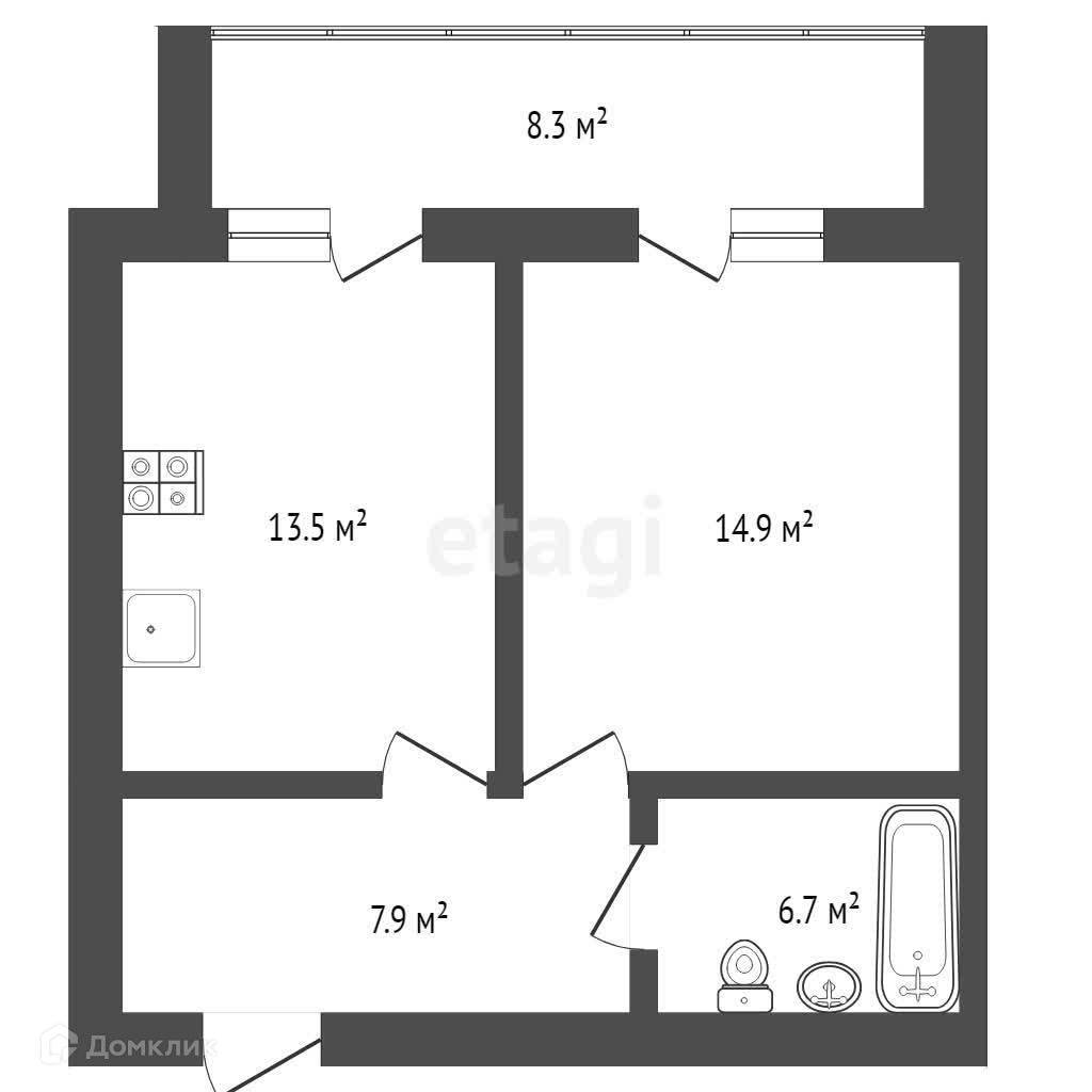 Площадь квартиры составляет 41,7 квадратных метра, включая уютную комнату 14,3 м2, просторную кухню 11,1 м2 и лоджию площадью 8 м2. не застеклена. В квартире предусмотрен совмещённый санузел.