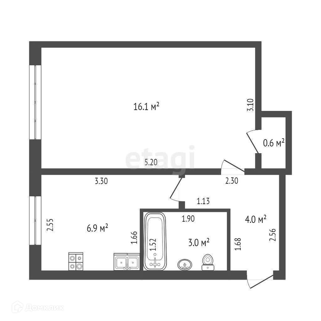 Общая площадь 30.6 м2