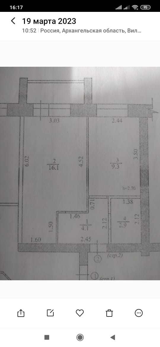 1-комнатная квартира, 33.9 м2, этаж 1 / 3, на продажу в Коряжме, улица Набережная им. Н. Островского, 80Б