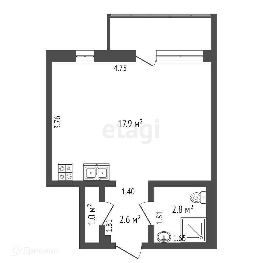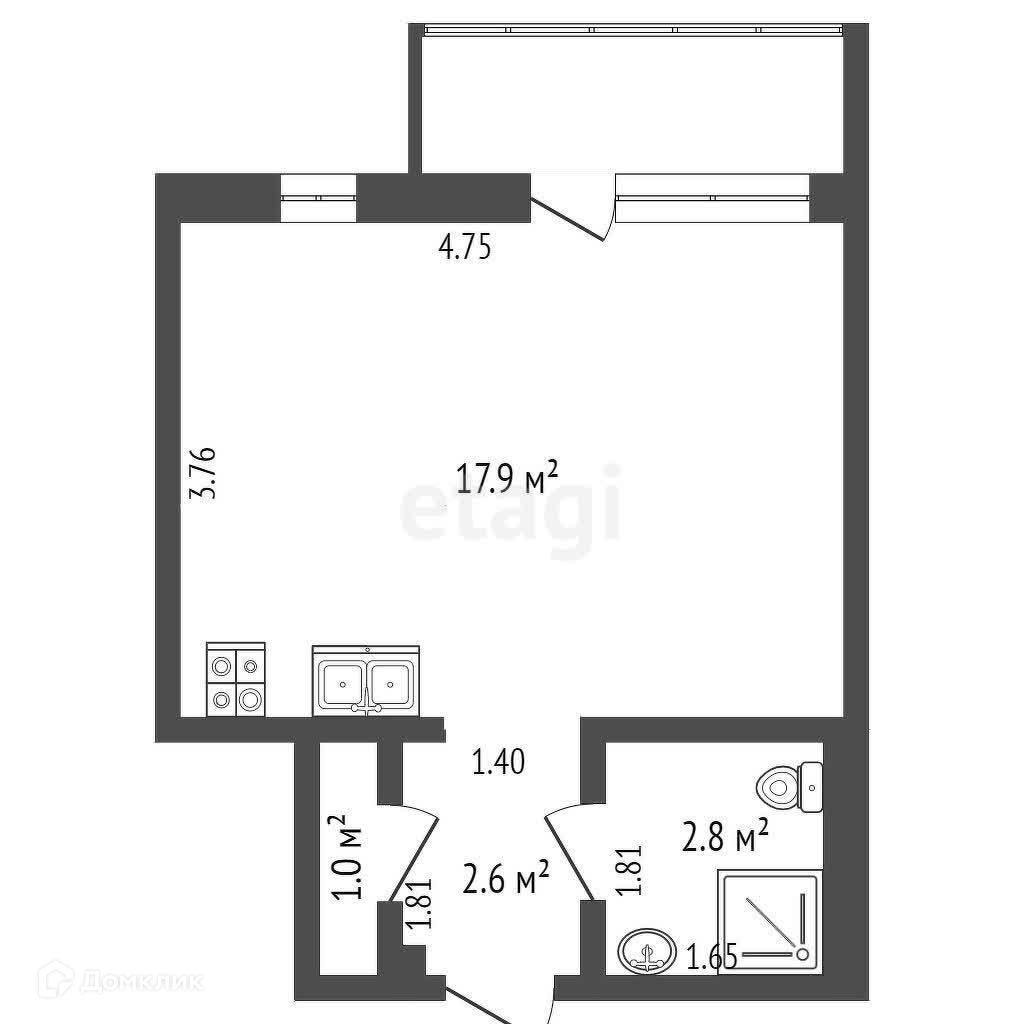 Общая площадь 24.3 м2