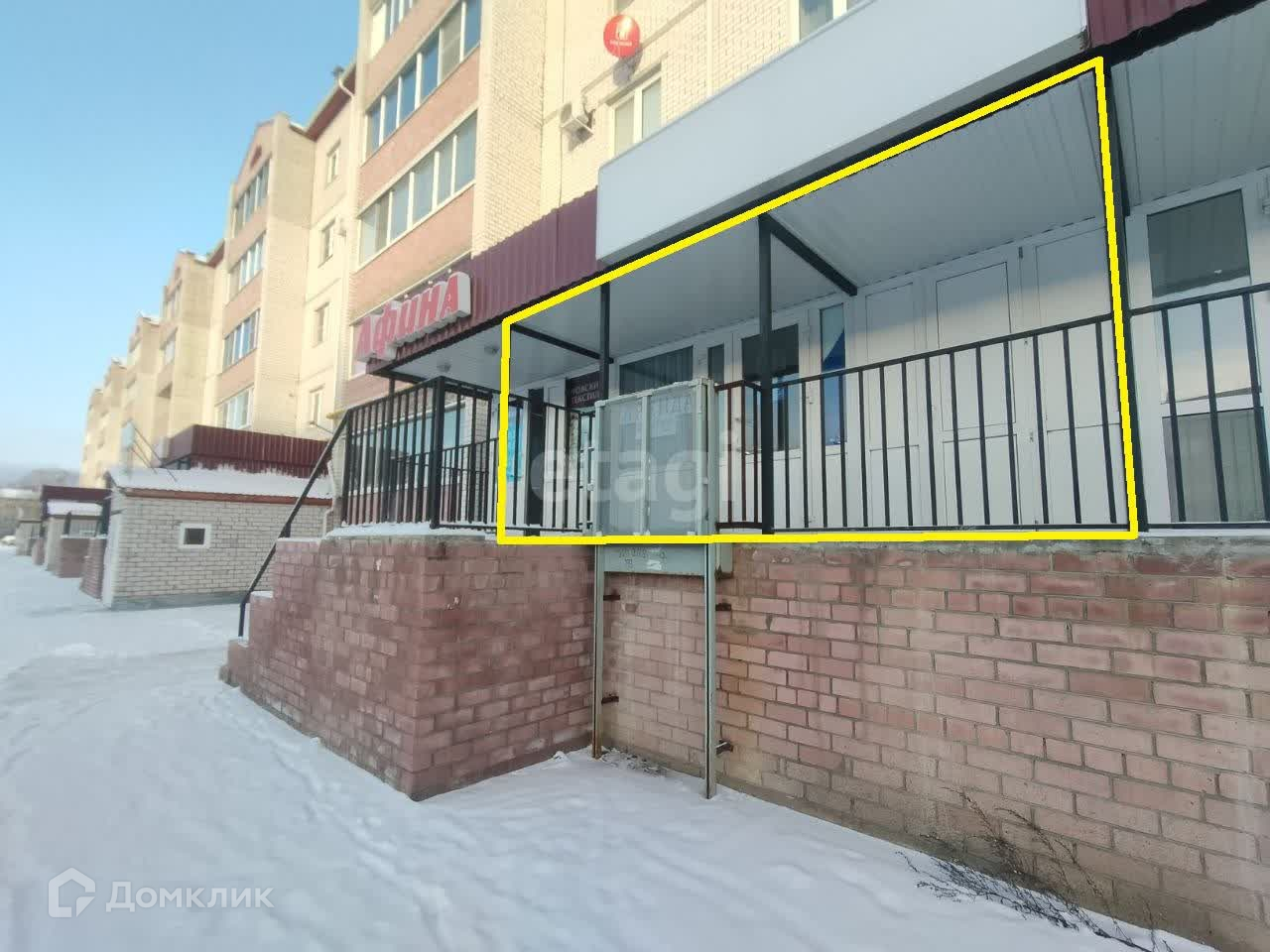 Находится в очень проходимом месте, в новой пятиэтажке около центральной улицы города. Имеется большое парковочное место, что доставит удобство как новому собственнику, так и клиентам.
