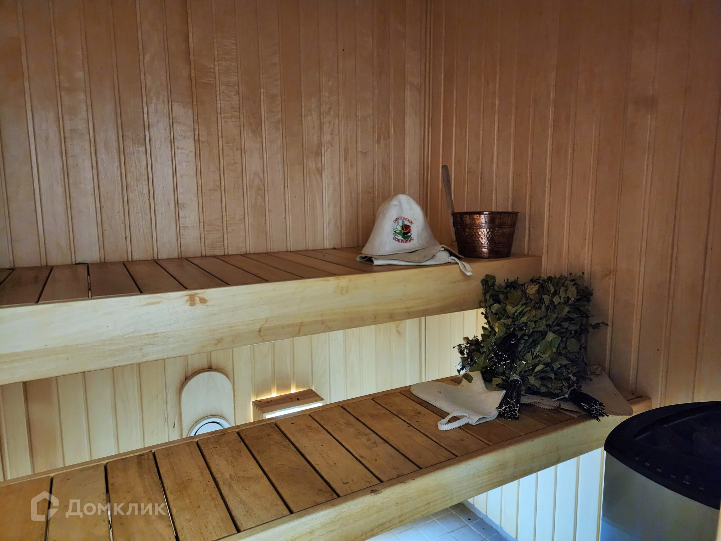 Коттедж состоит из следующих помещений: прихожая, уютная кухня, просторная гостиная с камином, три спальни, "комната хозяйки", комната с душем и ванной, сауна, два туалета, бойлерная и веранда.
