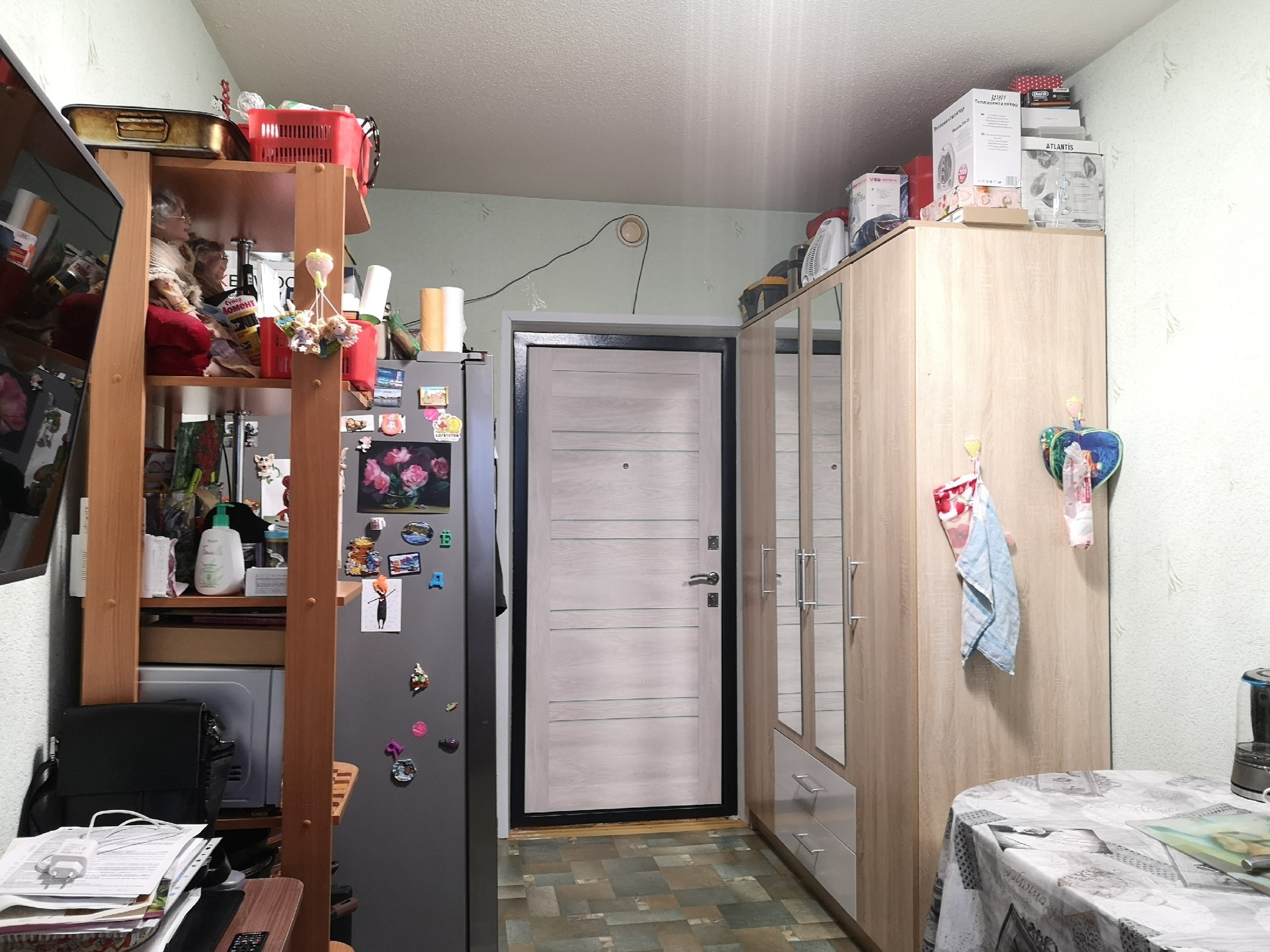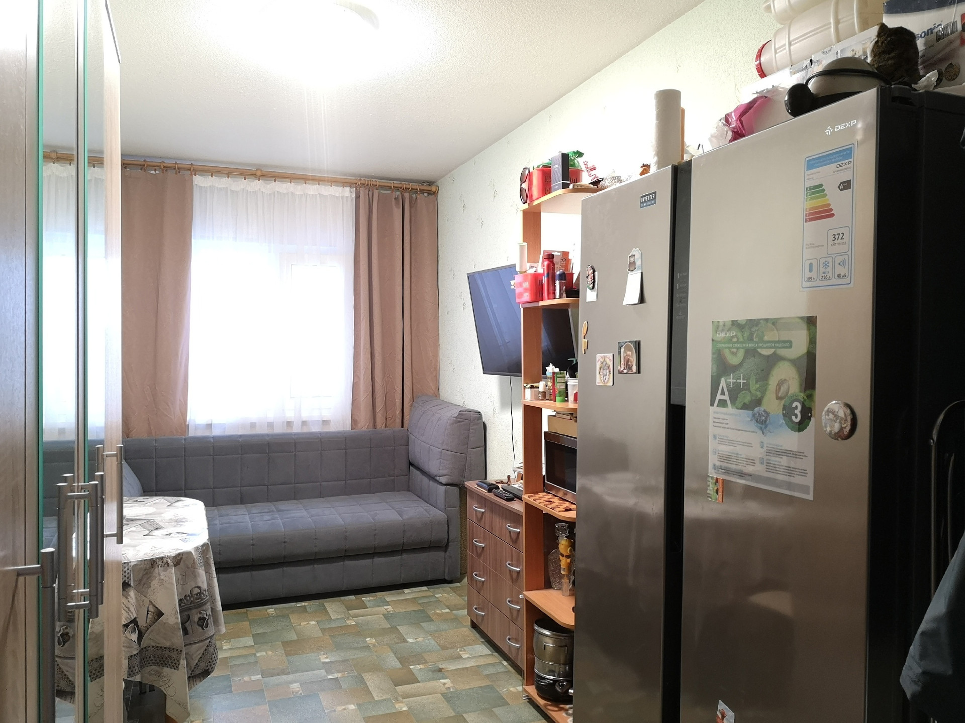 Комната в хорошем состоянии, расположена в семейной секции. В комнате выполнен косметический ремонт, установлен стеклопакет, заменена входная дверь. При продаже остаётся стиральная машина, двухстворчатый холодильник, шкаф, комод и этажерка. В местах общего пользования также сделан косметический ремонт, в секции не курят.