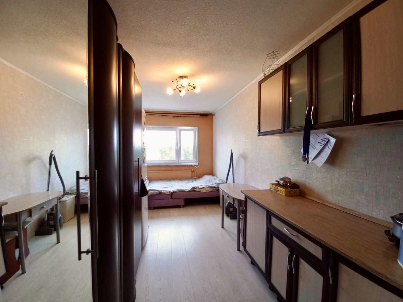 К покупке предлагается комната в хорошем состоянии, расположенная в чистой семейной секции. В комнате установлен стеклопакет, ламинат, остается всё, что есть на фото, кроме дивана и мелкой бытовой техники.
