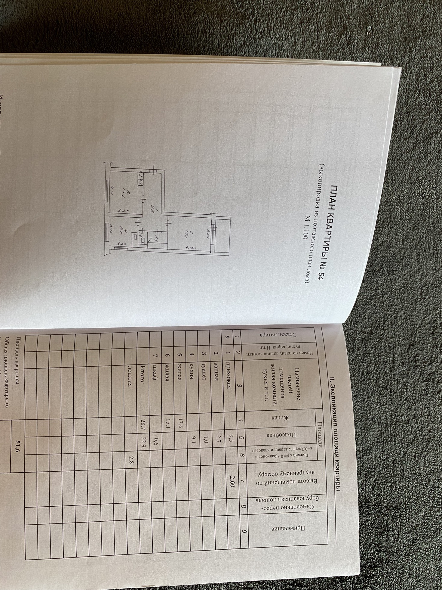 Общая площадь 51.6 м2
