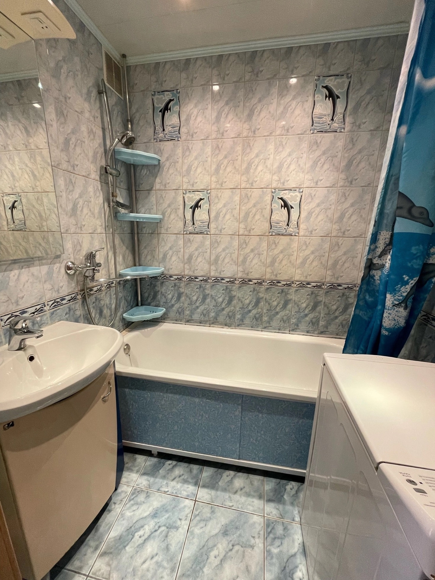 • На стенах и полу санузла кафельная плитка.