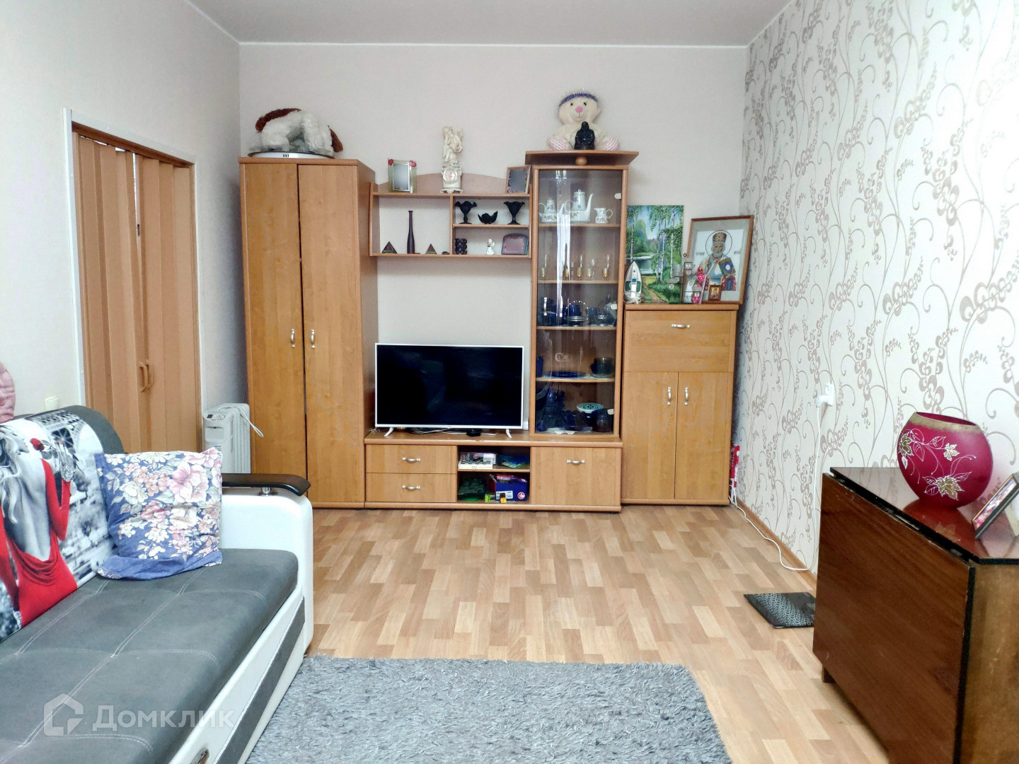 В квартире при продаже остается: кухонный гарнитур, электрическая плита, шкаф-купе в комнате и душевая кабина.