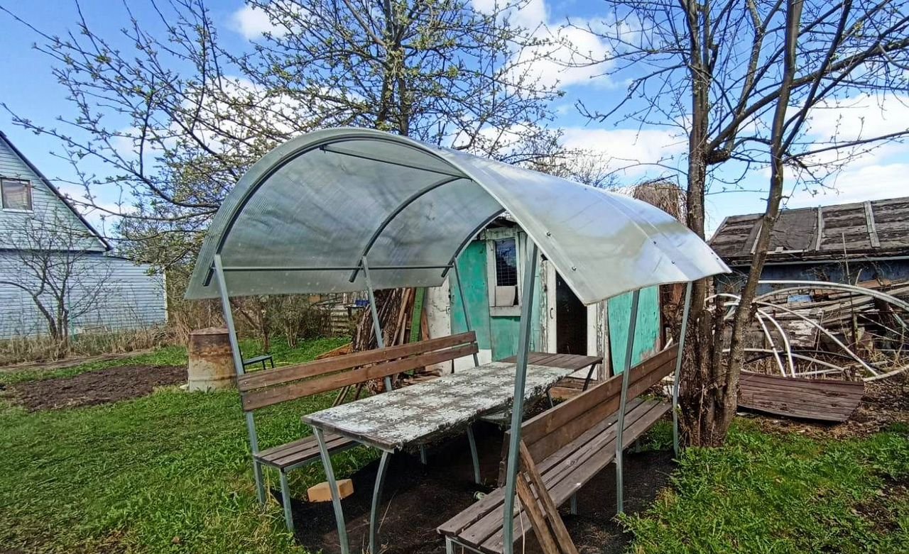 В конце участка деревянный туалет.