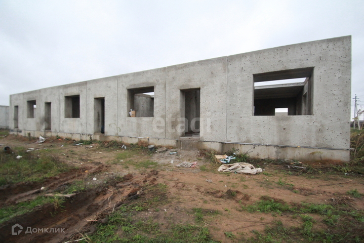 Дом изготовлен из бетонных утепленных стеновых панелей толщиной 51 см, ленточный фундамент из железобетонных блоков и фундаментных плит, железобетонных плит покрытия (кровля), окна пластиковые, входная дверь.