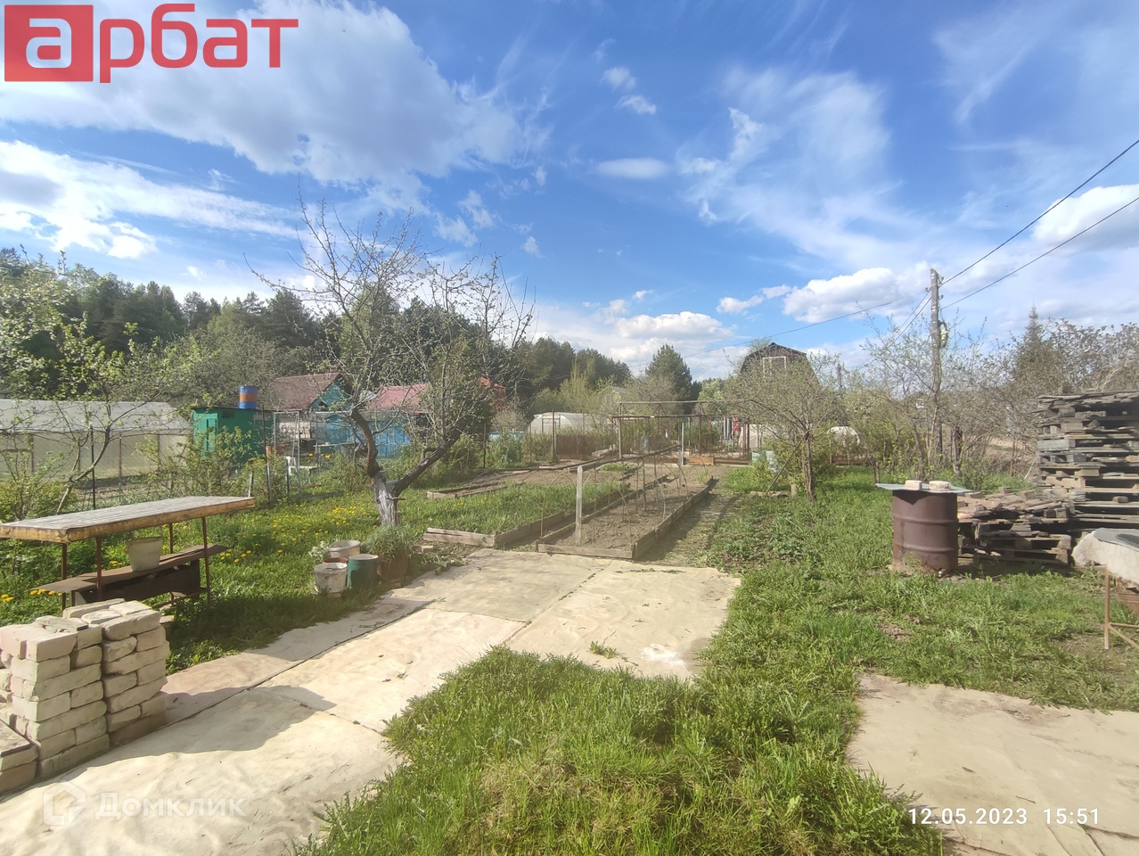 Участок правильной прямоугольной формы, обработан с плодовыми деревьями и кустами.