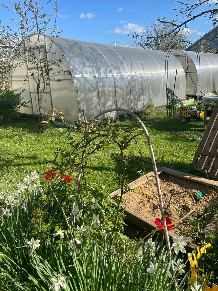 На участке - детская площадка, 2 теплицы, кирпичный туалет, баня, парковка для 3 авто.