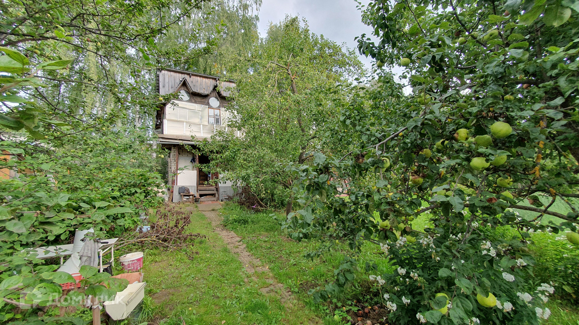 Дом летний, фундамент - железно-бетонные сваи, 2 этажа (1-этаж кирпич, 2-этаж каркасный), 2 комнаты, кухня, парная. На втором этаже большой летний балкон. Крыша покрыта металлическим профлистом.