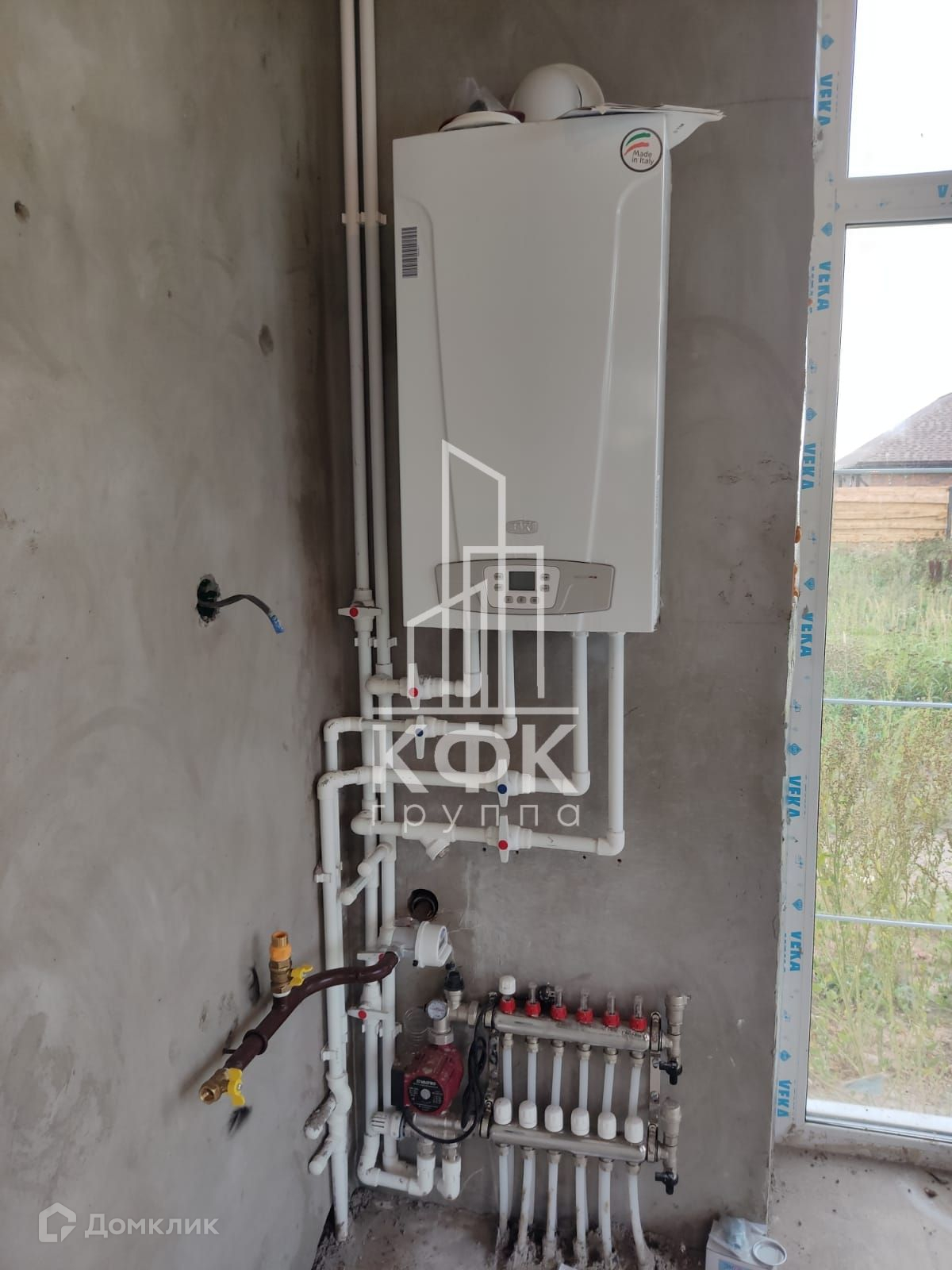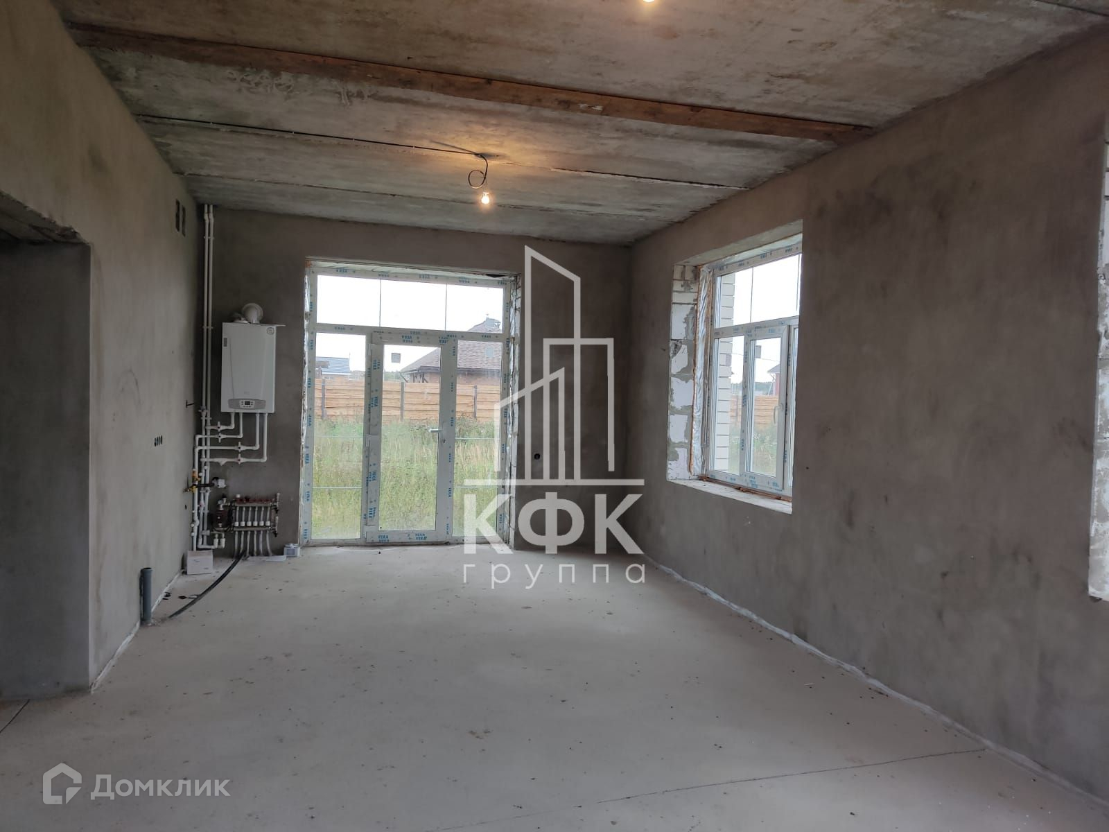 Черновая отделка дома: штукатурка стен, все приборы учёта, двухконтурный газовый котёл на горячую воду и отопление, разведено электричество по всему дому. Все системы в рабочем состоянии. На первом этаже сделаны тёплые полы, на втором радиаторы. Коммуникации все центральные ( газ, свет, вода), автономная канализация (установлен септик Урал).