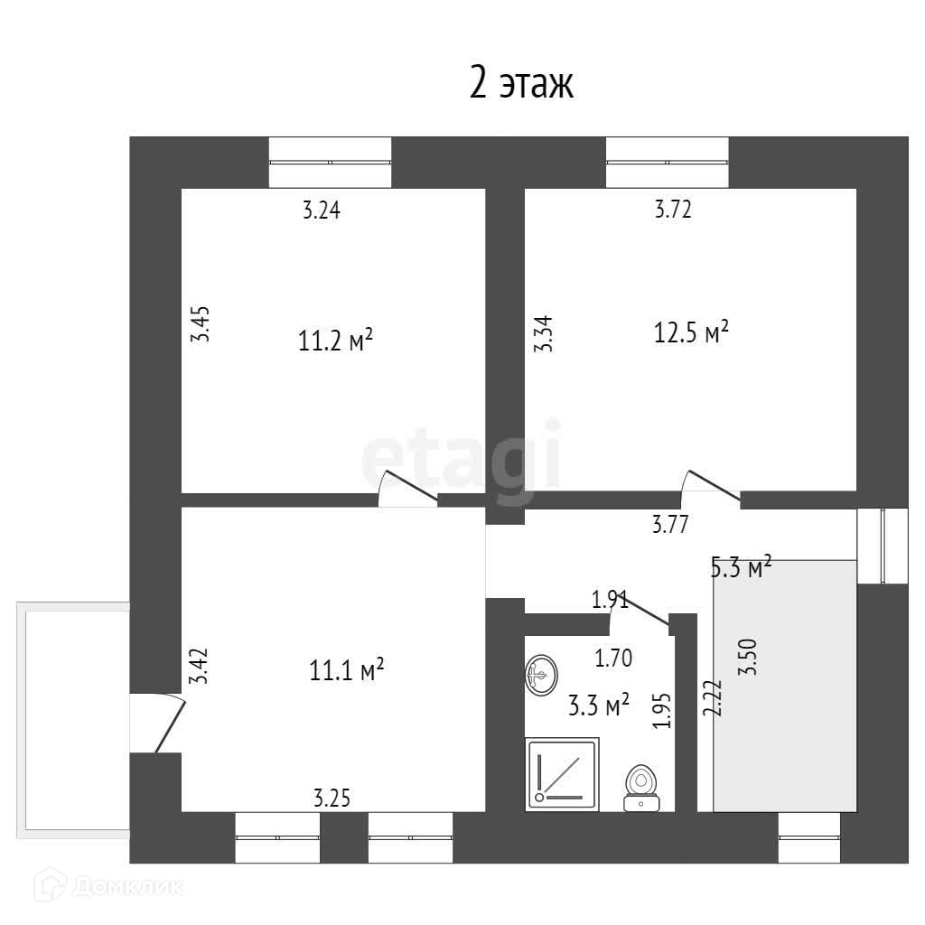 На втором этаже две полноценные комнаты и сан узел.