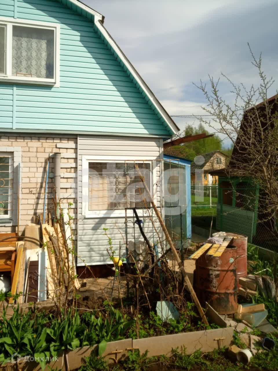 Домик выполнен из кирпича с деревянными пристройками. У домика два этажа. Подходит для постоянного проживания.В домике отделена кухонная зона есть прихожая на втором этаже организована спальня.