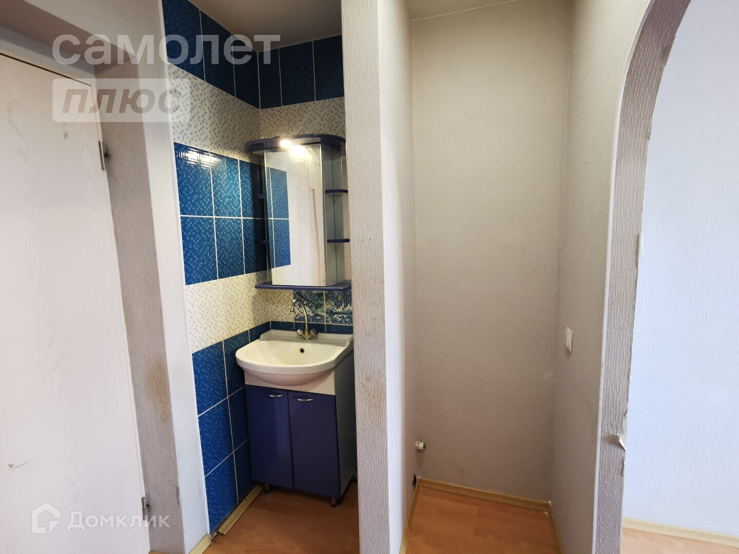 Установлено пластиковое окно, натяжной потолок, на полу ламинат. В комнате установлена раковина, есть возможность подключить стиральную машину, душевую кабину и унитаз.