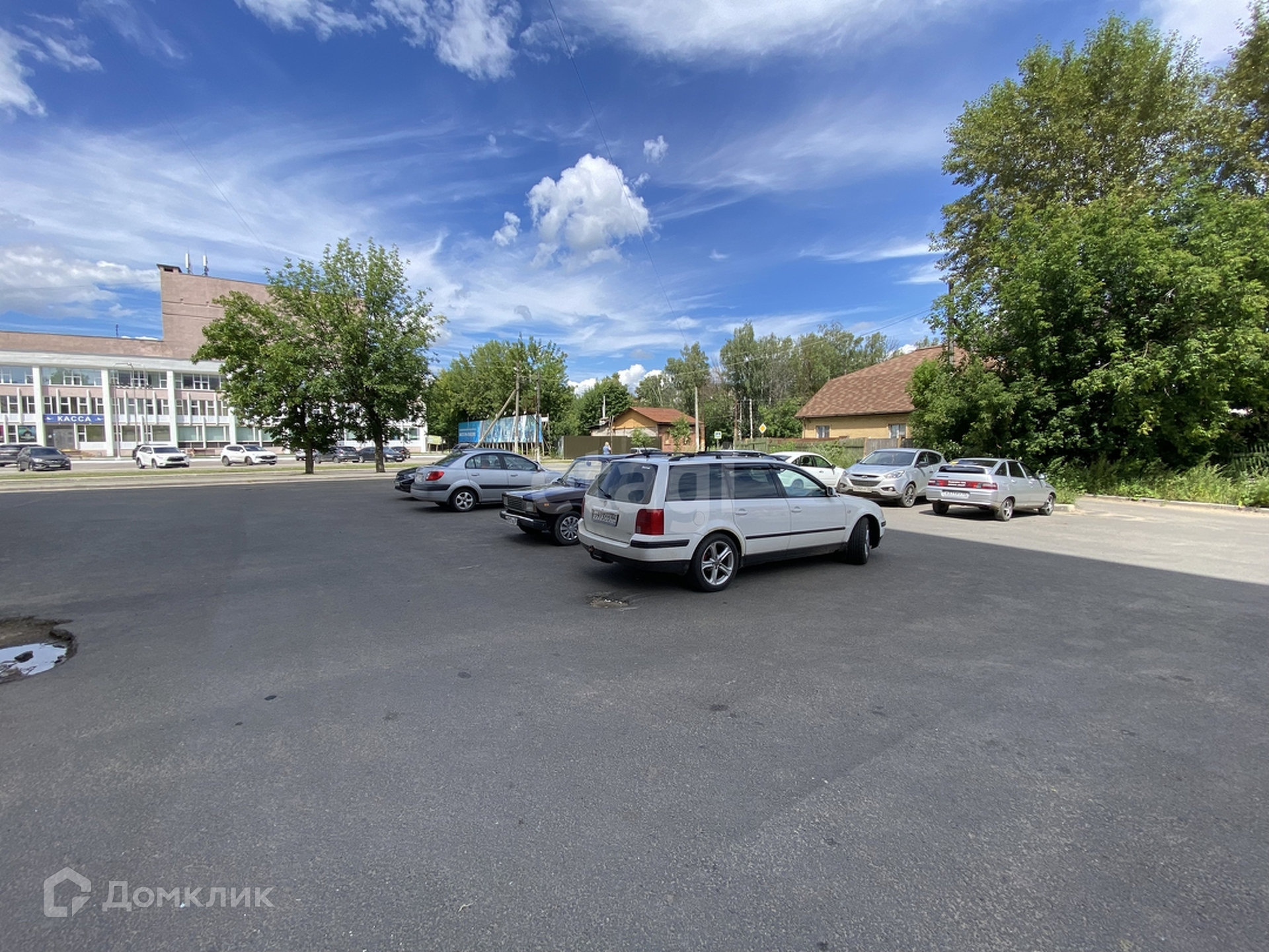Рядом с домом, хорошая асфальтированная площадка под парковку.