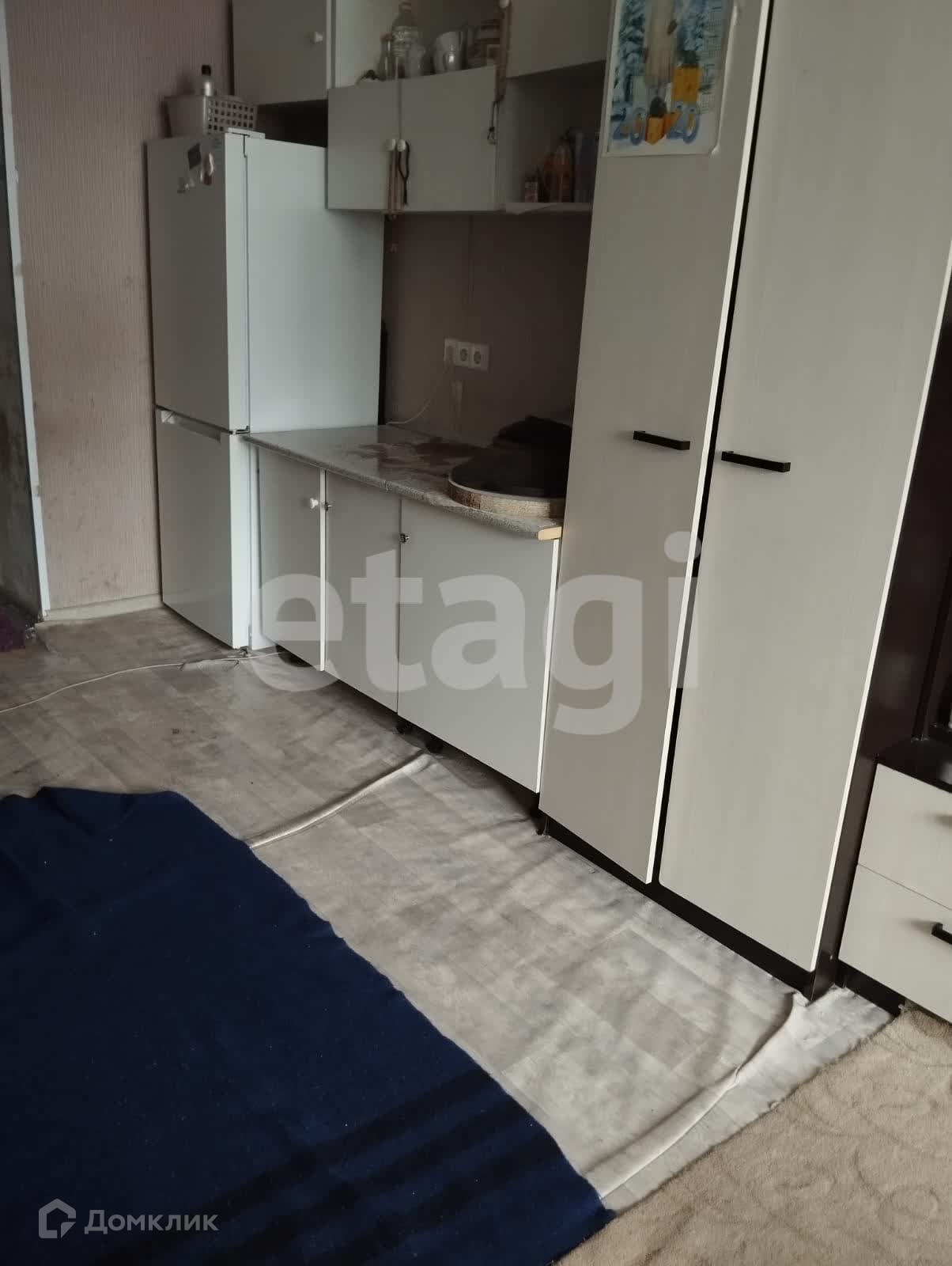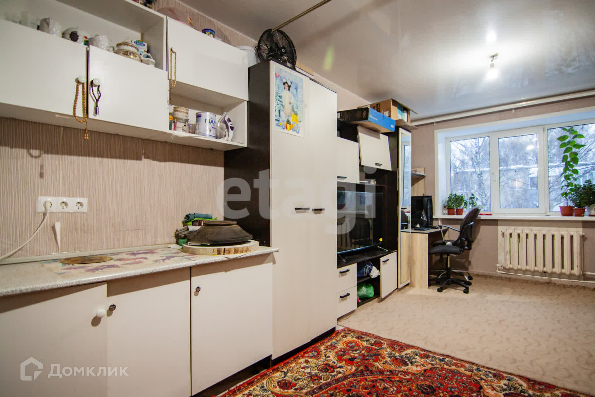 Окно ПВХ. Натяжные потолки. На полу линолиум. Электропроводка заменена (установлен свой автомат)