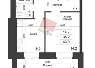 Общая площадь: 43.9 м2