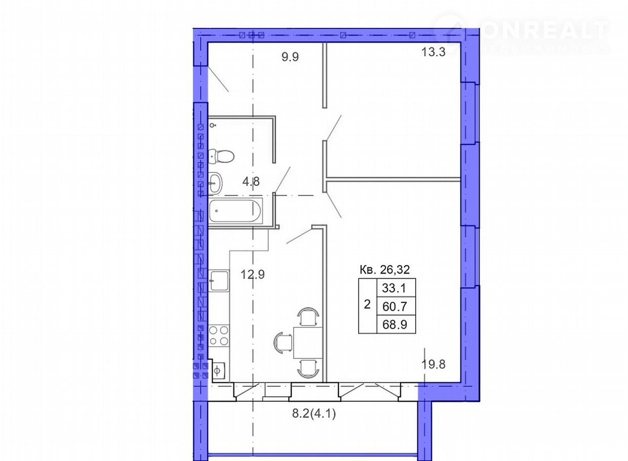 Общая площадь 68.9 м2