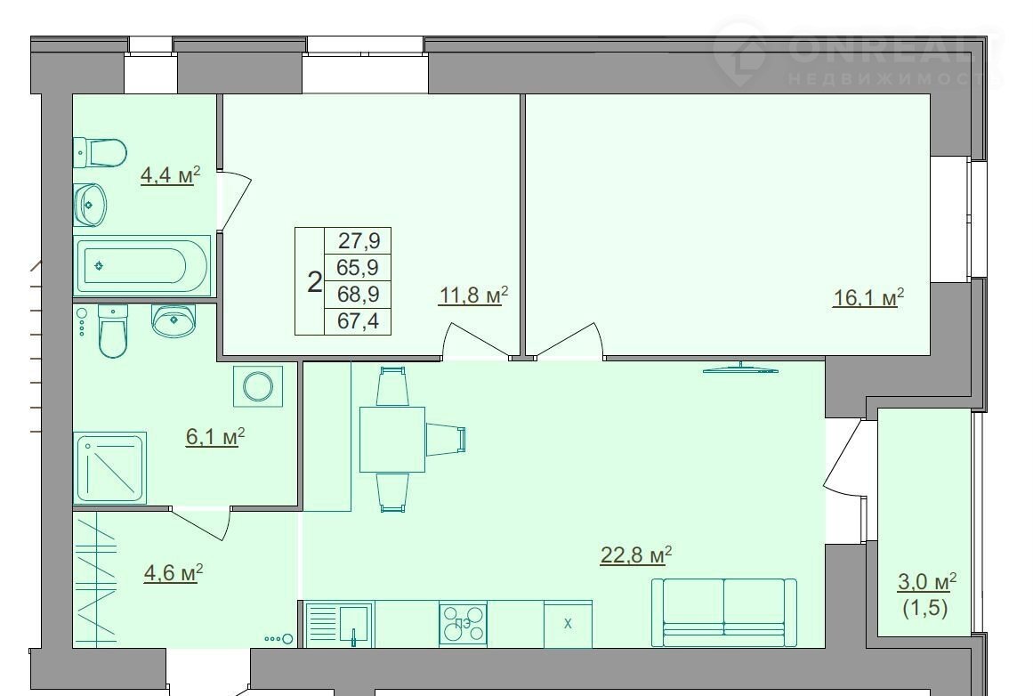 В продаже: студии, 1-, 2-, 3-, 4-комнатные квартиры