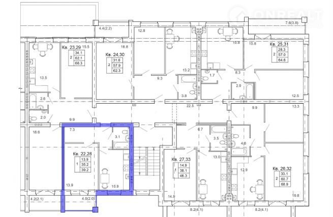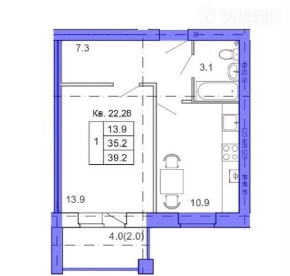 Общая площадь 39.2 м2